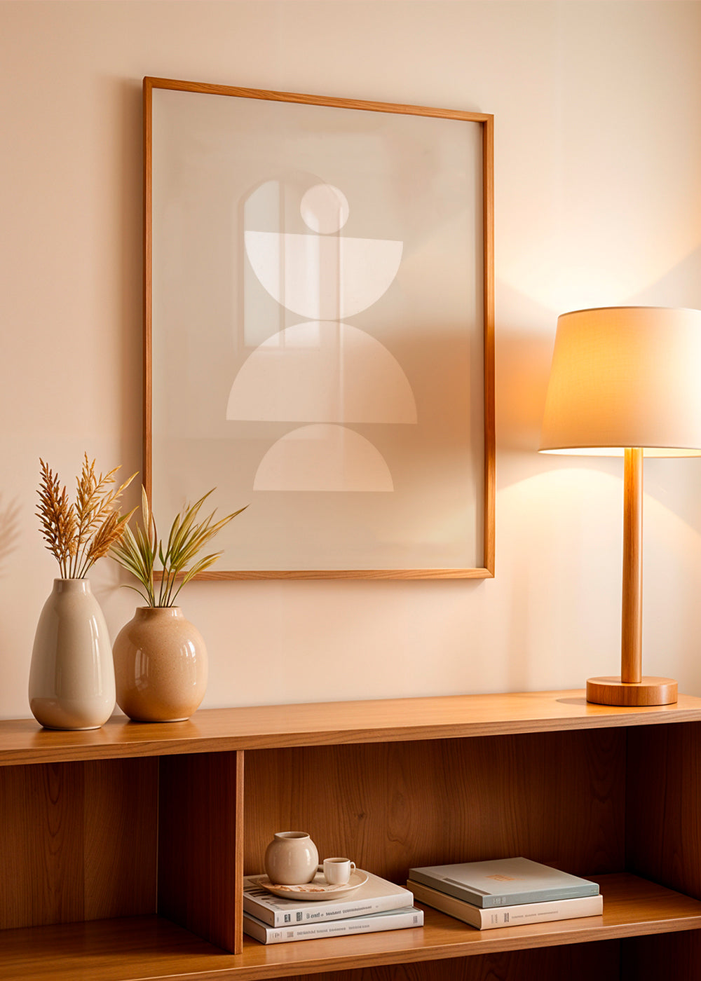All our frames are manufactured in Spain. The white, black and oak frames are made of Ayous wood, and the oak ones are veneered in oak, while the metallic ones are made of aluminum.