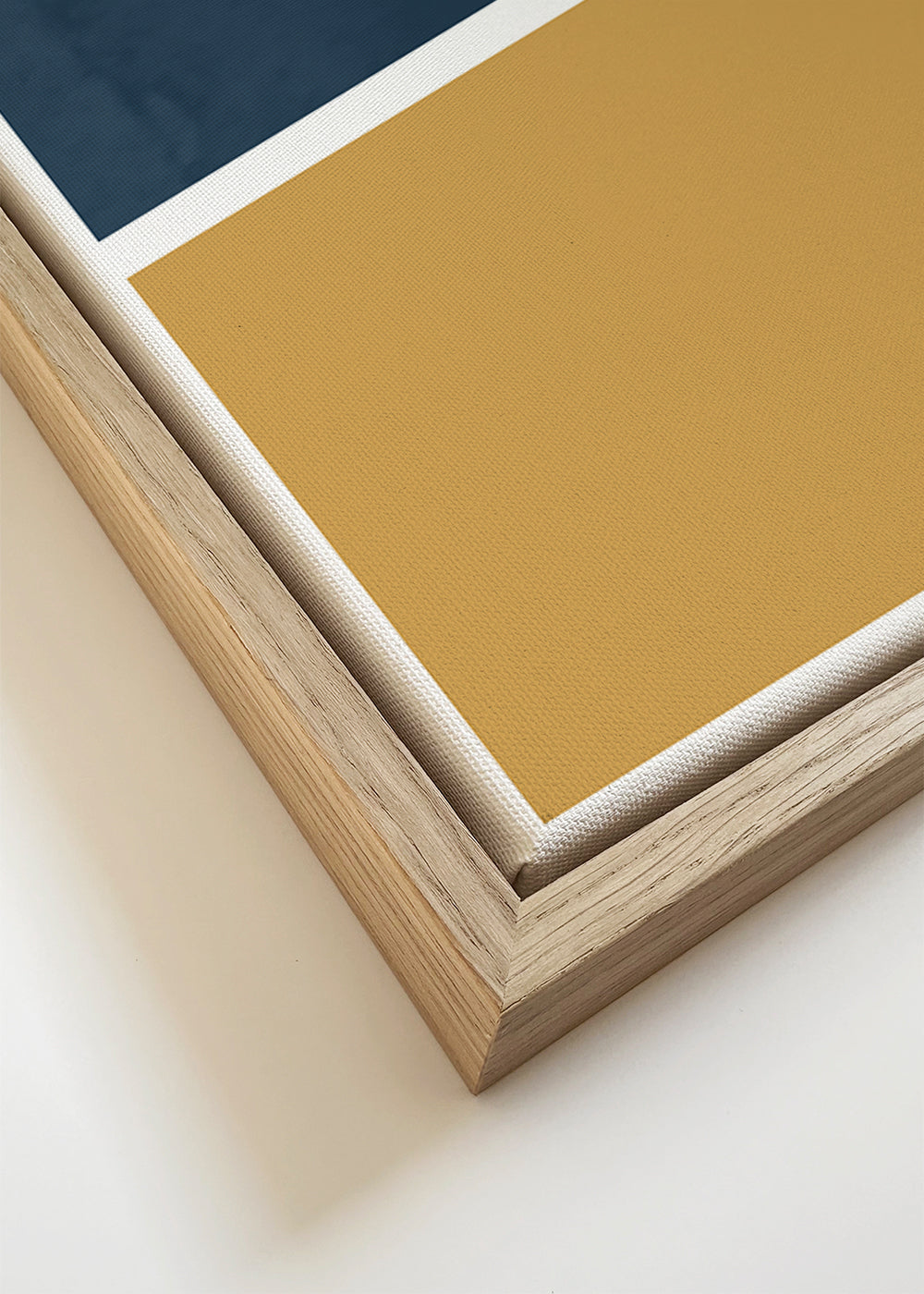 The wooden frames up to 20x28 in (included) have a width of 0.6 in and a depth of 1.2 in, while in the larger ones the width is 0.8 in and a depth of 1.2 in.