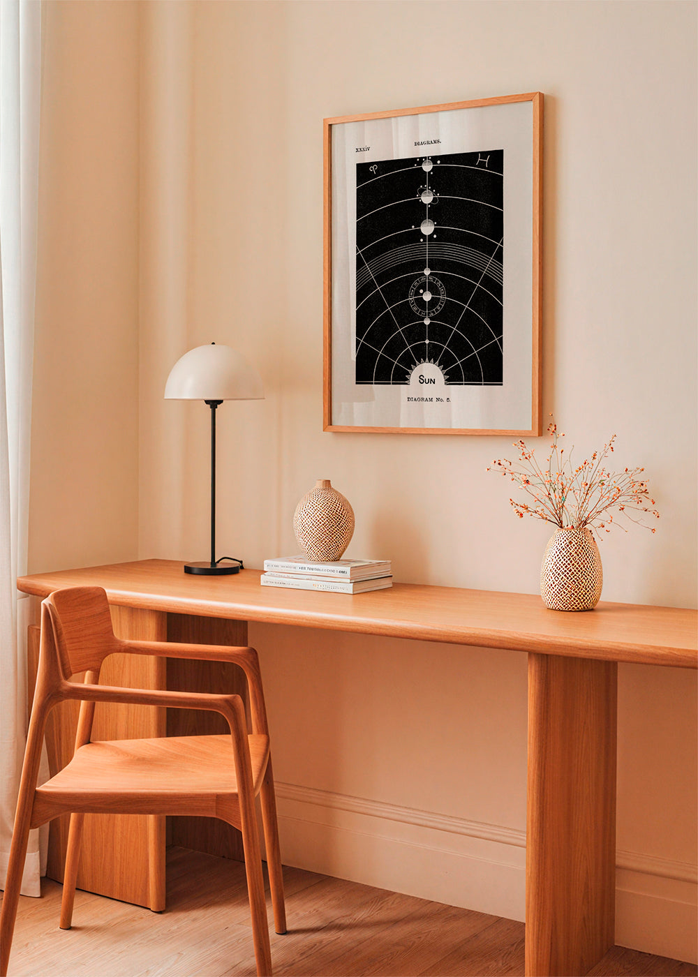 Beautiful print inspired by the collection of space posters, by creative artist 1x, in tones of black, and perfect to hang vertically. A retro poster you can pair with other vintage-style prints for an original touch in the home. Fill your decoration with art.