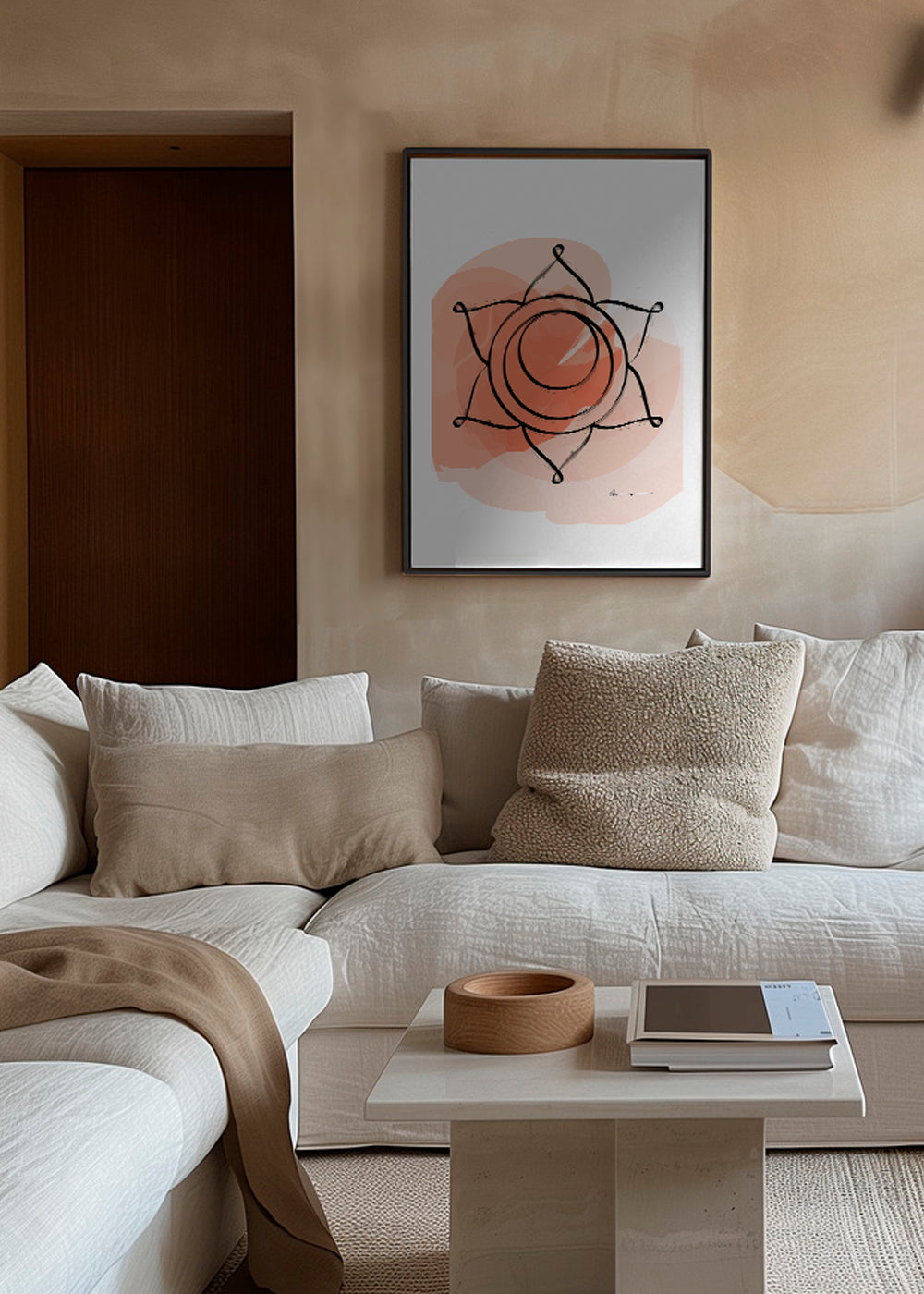 Beautiful print from our yoga wall art collection, from the Yoga in Art collection, with shades of orange, and facing vertically. Illustrated prints give your home decor a touch of originality. Dress up your walls at home