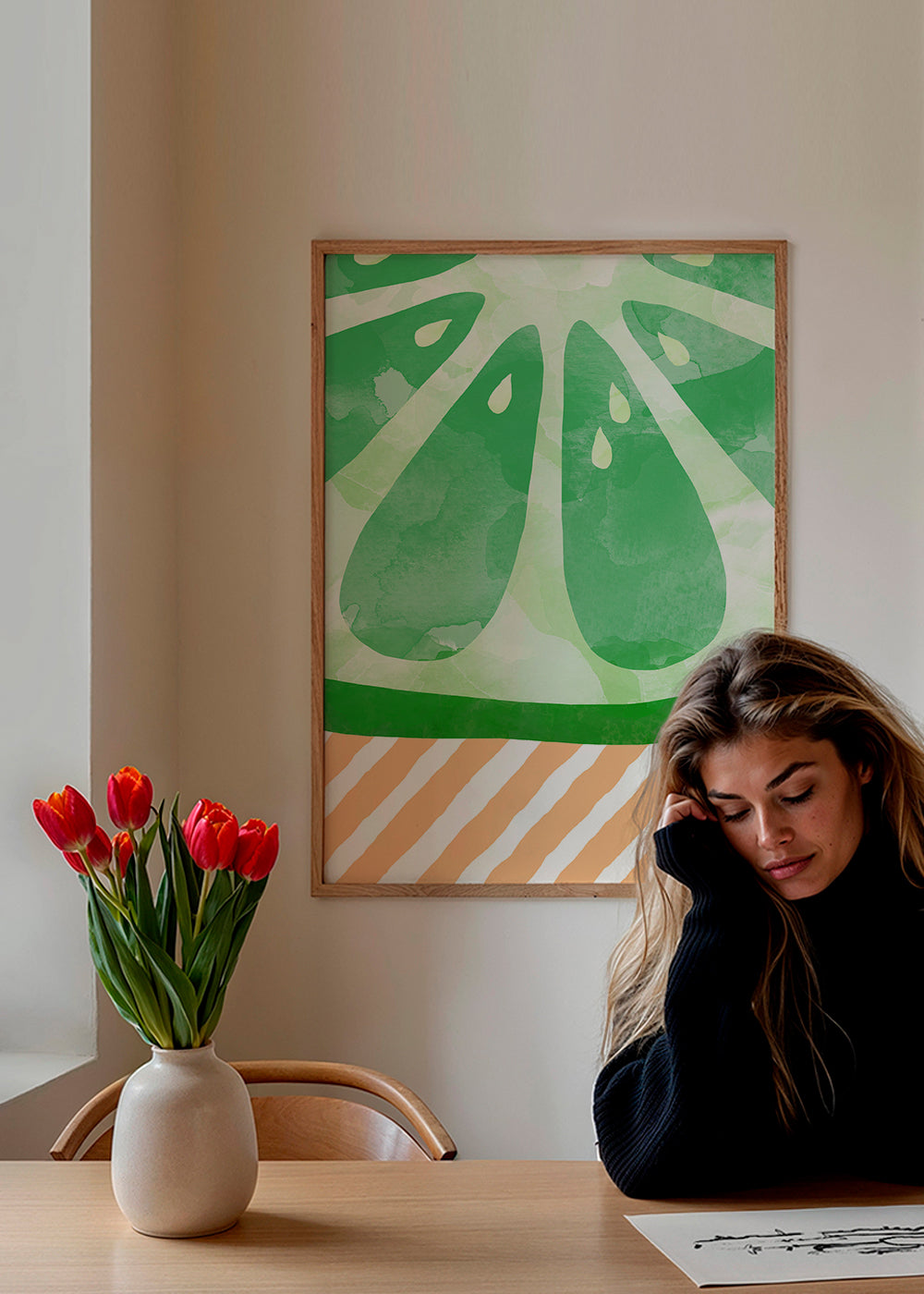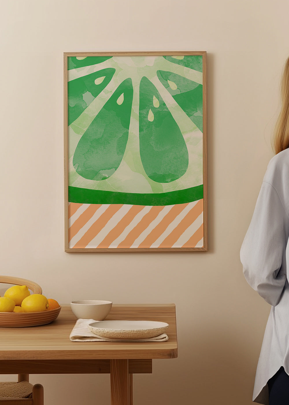 This print from the food posters series, from the Orara Studio collection, with shades of green, and to hang in vertical position. Prints for the kitchen are a perfect decorative element for such a cosy space. Elegant walls for chic homes.