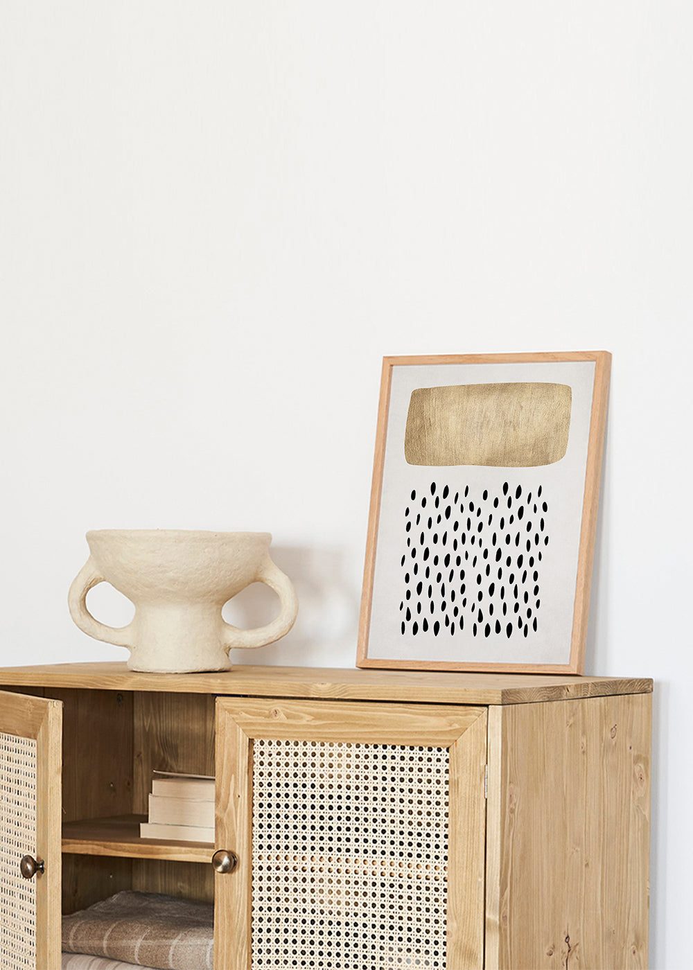 A poster from our pattern wall art collection, created by KUBISTIKA, in tones of gold, and facing vertically. Geometric art is an elegant style to decorate the walls of your home with. Create your favourite spot.