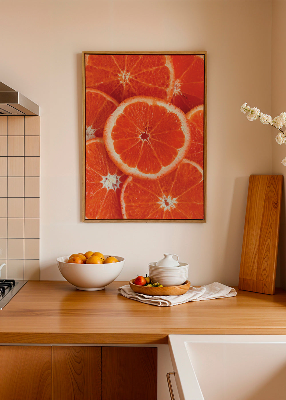 Beautiful poster from the fruit posters category, with shades of orange, and vertical layout. The kitchen can also be fun; let our kitchen prints bring out your culinary side. There are no ugly or beautiful walls, just empty or full ones.