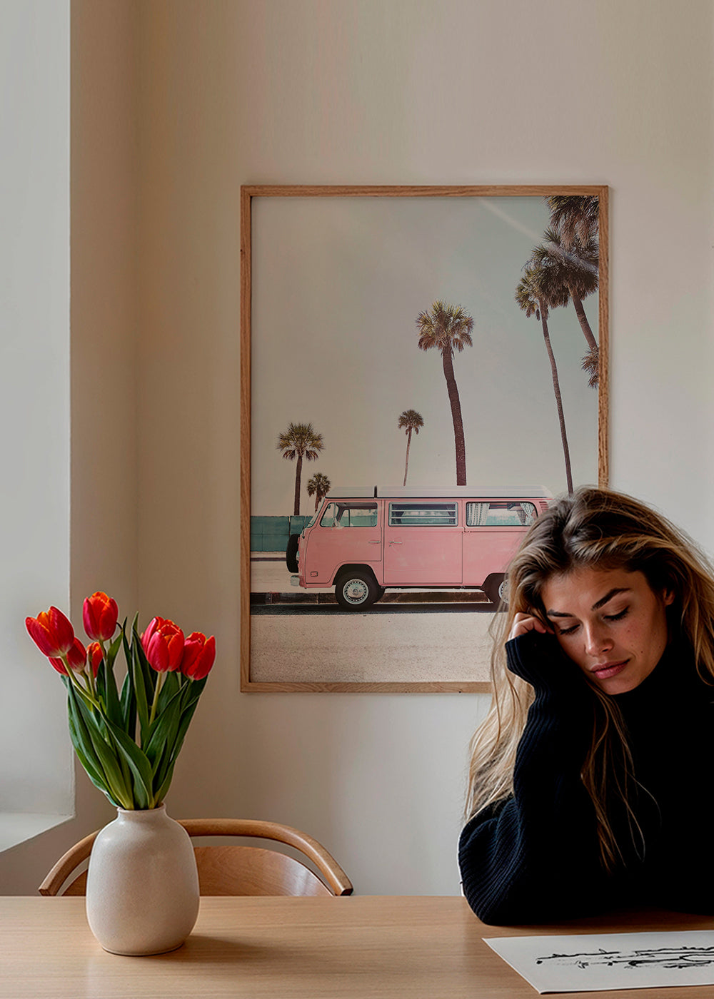 Beautiful design from our repertoire of cars posters and wall art, an original by Kathrin Pienaar, in tones of pink, and to hang in vertical position. Photos to frame help make any home more modern. Refresh a whole room by just adding a few posters on the walls.
