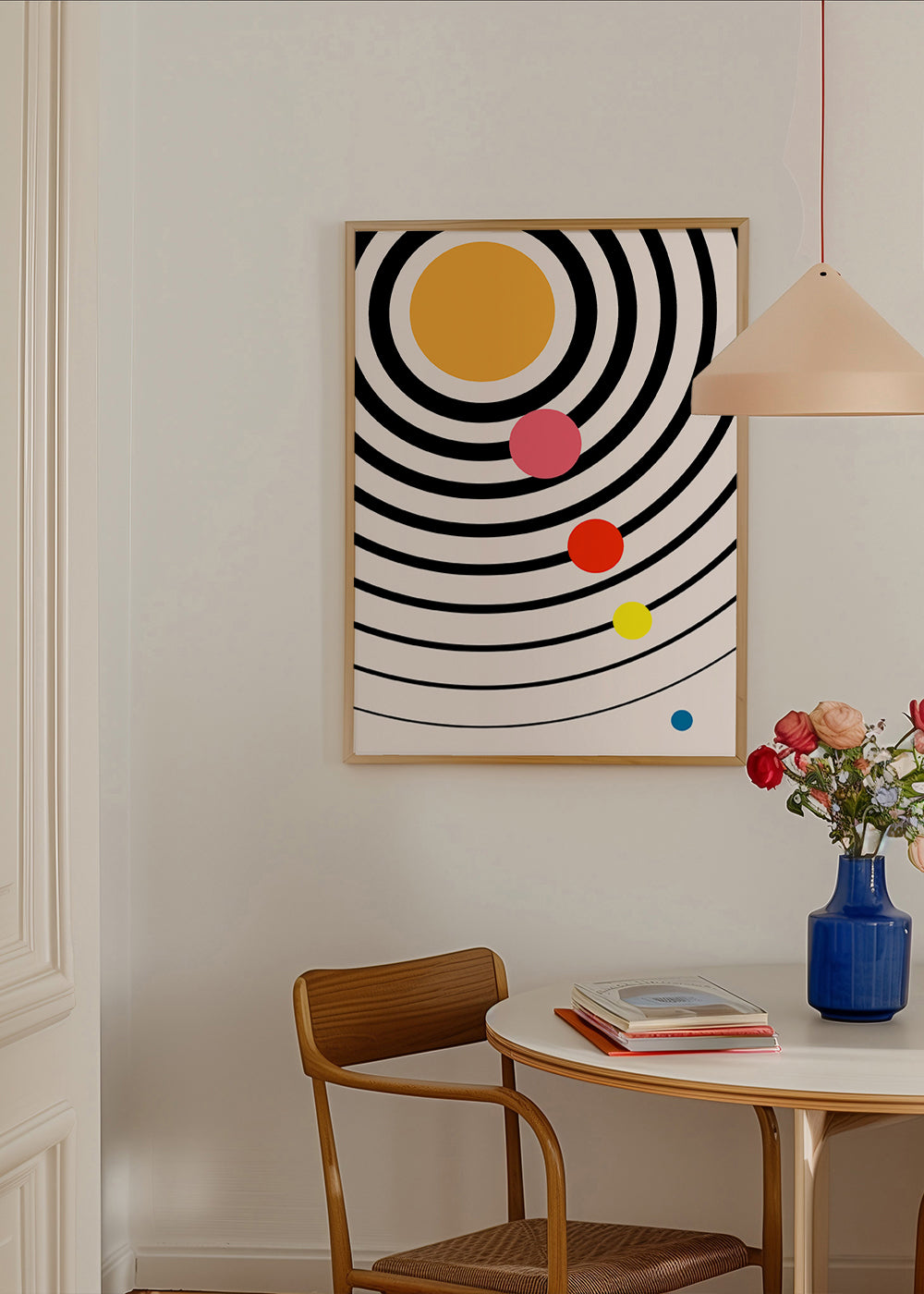 This poster in the style of our space posters, an original by Kubistika, in tones of red, and with vertical layout. A retro poster you can pair with other vintage-style prints for an original touch in the home. Transform your spaces with art.