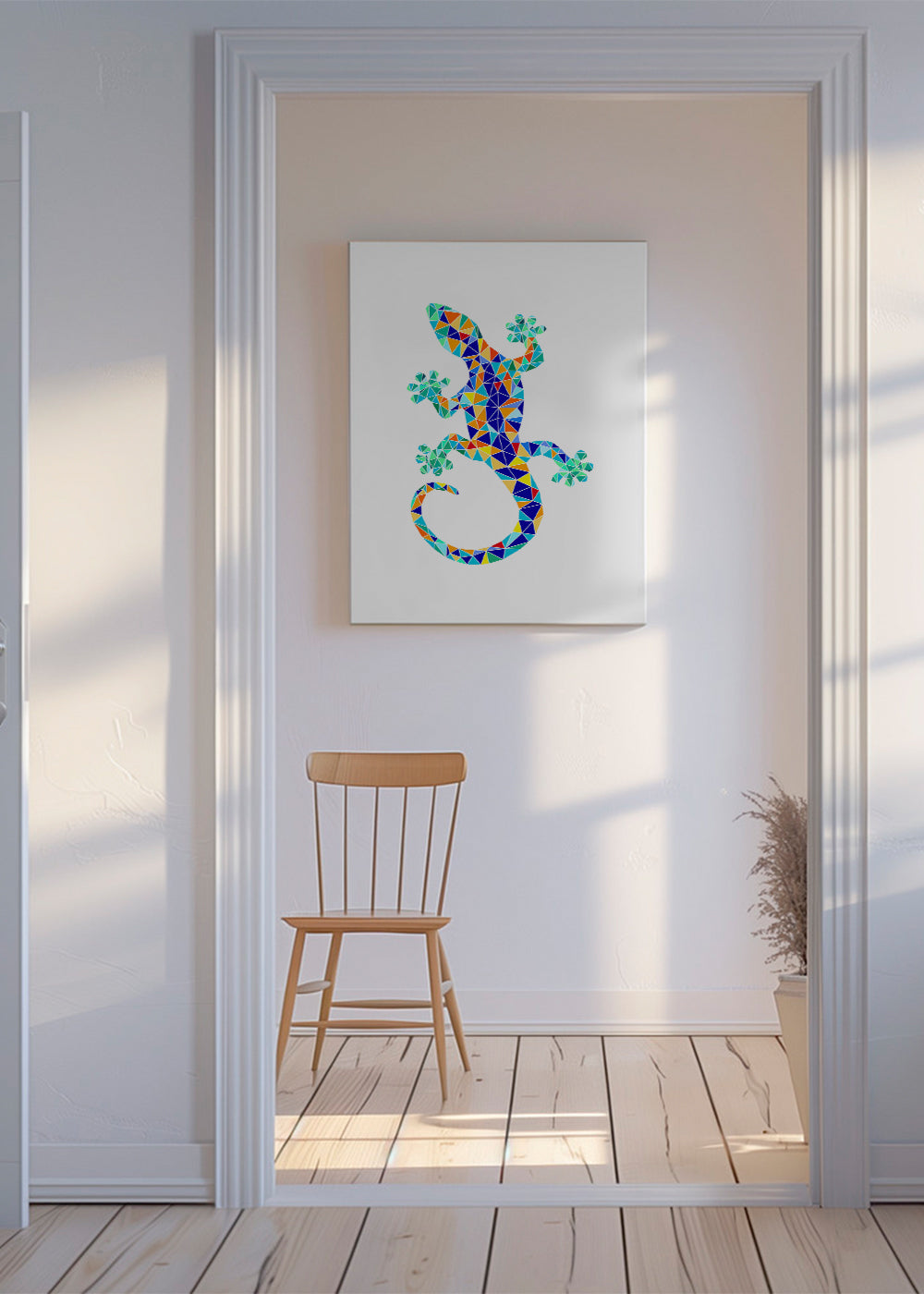 This print from the geometric wall art and prints collection, by the artist Nouveau Prints, with shades of multicolor, and vertical layout. The abstract, geometric shapes help create a casual, creative setting. Add a bit of art to your home decor.