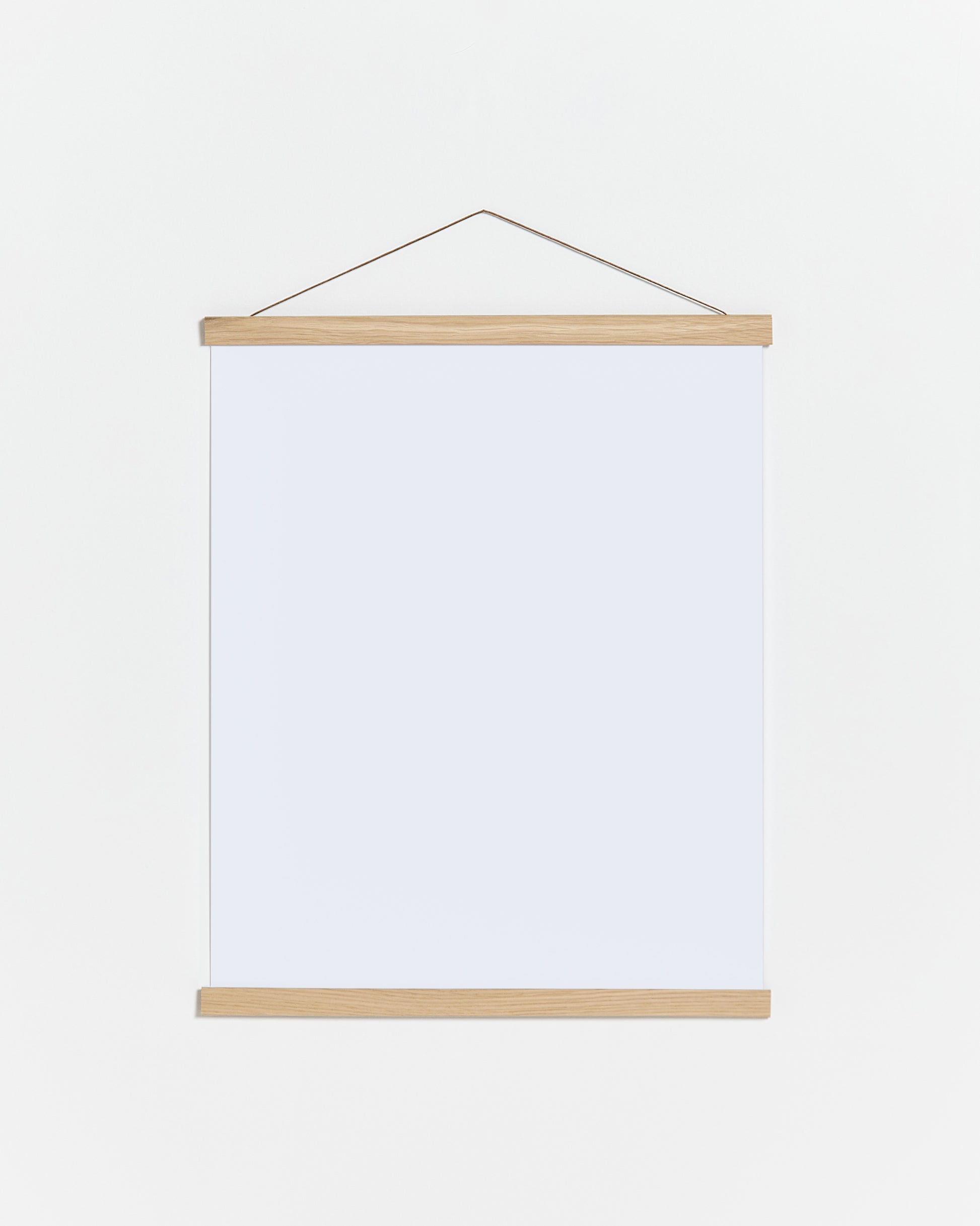 Magnetic oak wooden poster frame. Thanks to its magnets, you can hang your 70x100 cm, or 70x50 cm in horizontal format, without being damaged. It includes a matching brown rope, which you can use to hang the frame in the place you prefer the most. It is an original and beautiful way to hang your favorite works on the wall and we have hangers of all sizes available on our website.