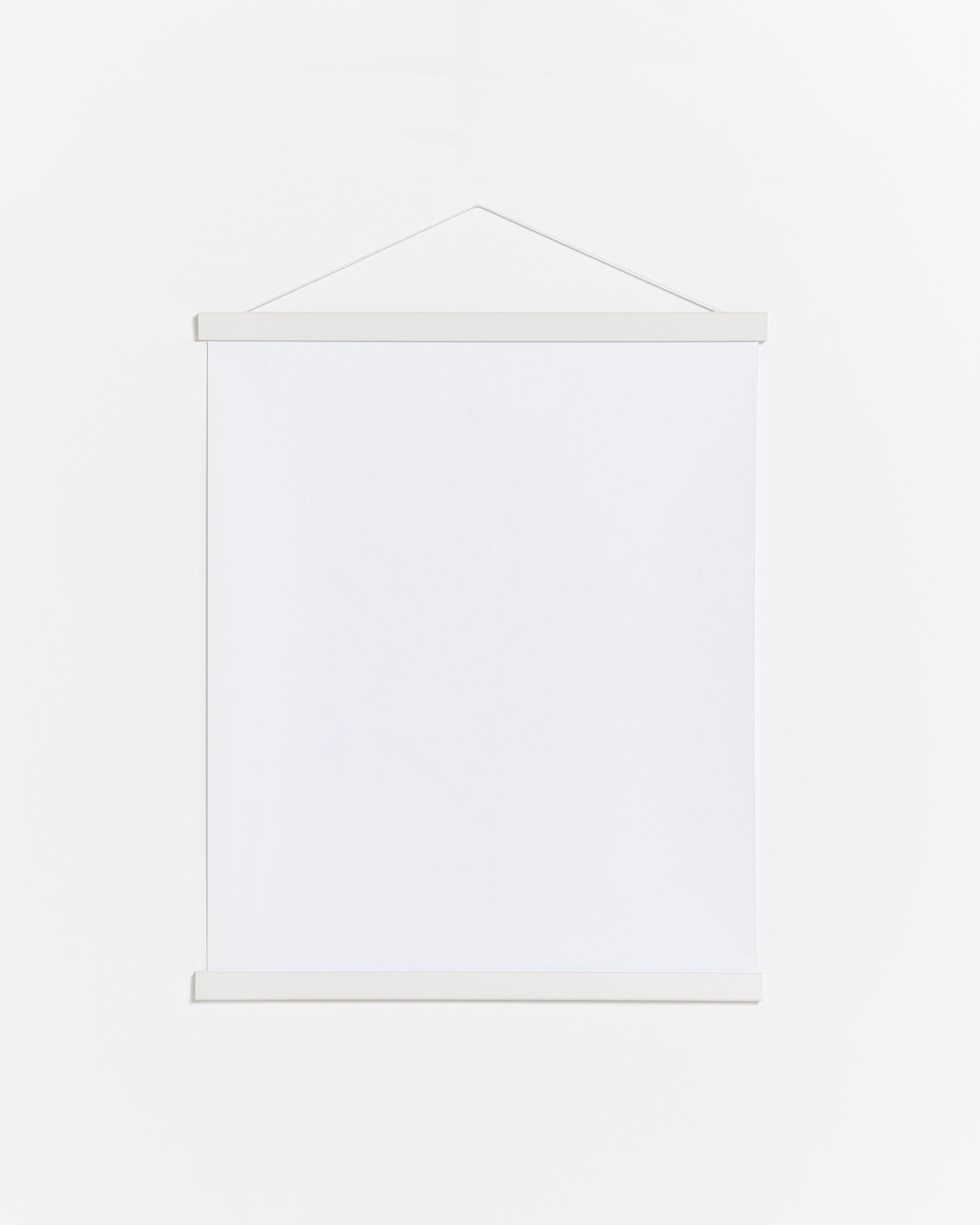 Magnetic white wooden poster frame. Thanks to its magnets, you can hang your 60x90 cm works on the wall without damaging them. It incorporates a matching white rope, which you can use to hang the frame in the place you prefer the most. It is an original and beautiful way to hang your favorite works on the wall and we have hangers of all sizes available on our website.