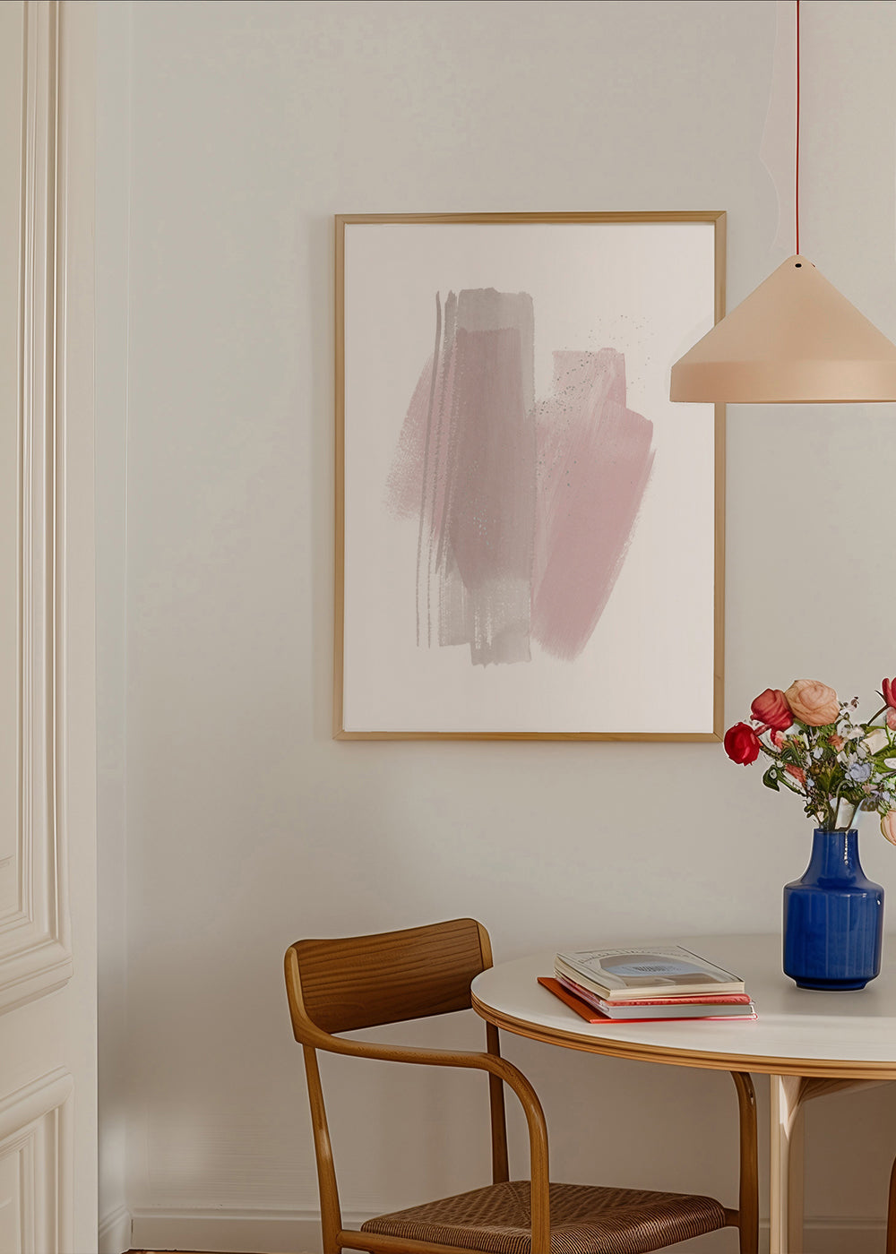 Print with an illustration in pink tones