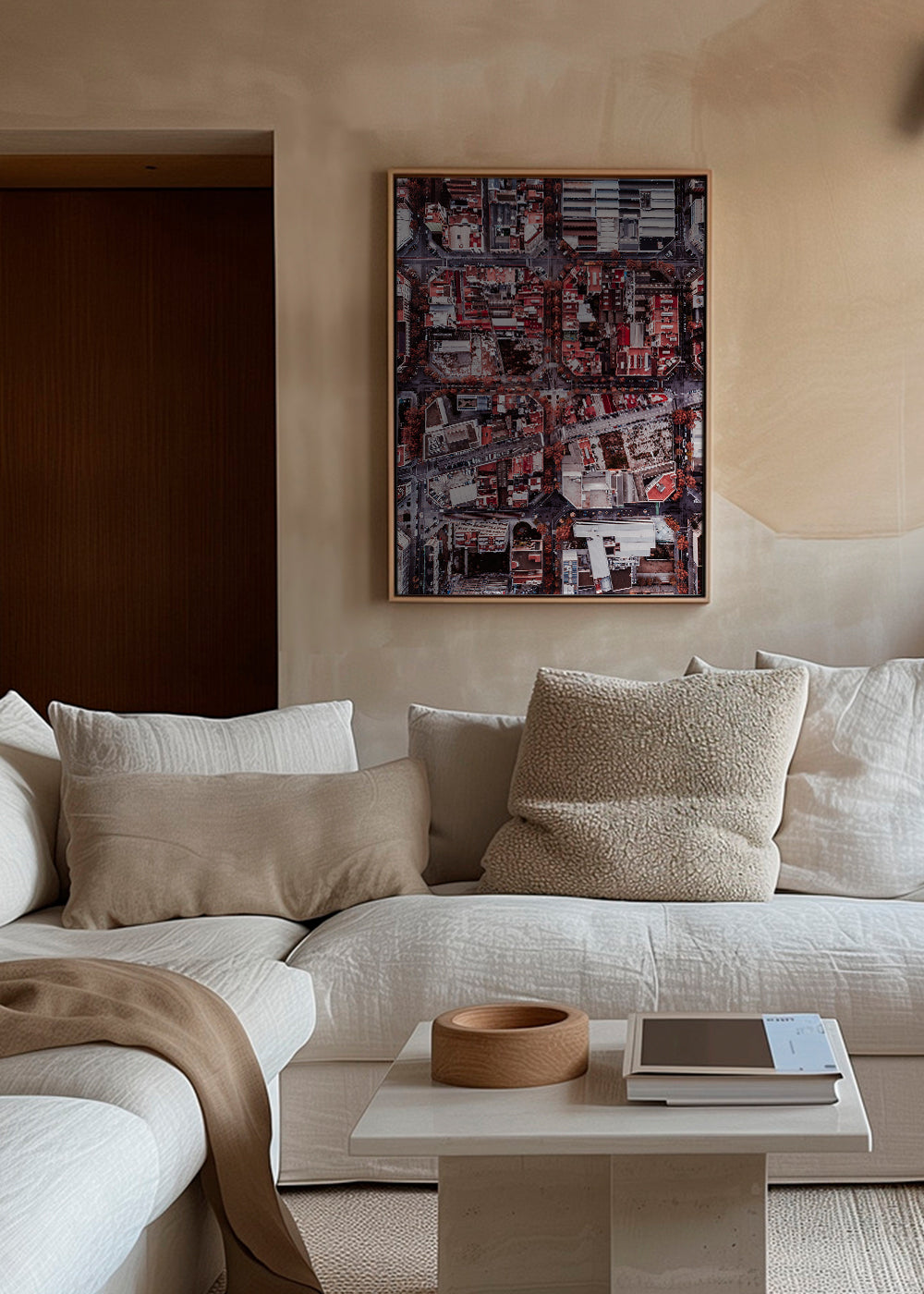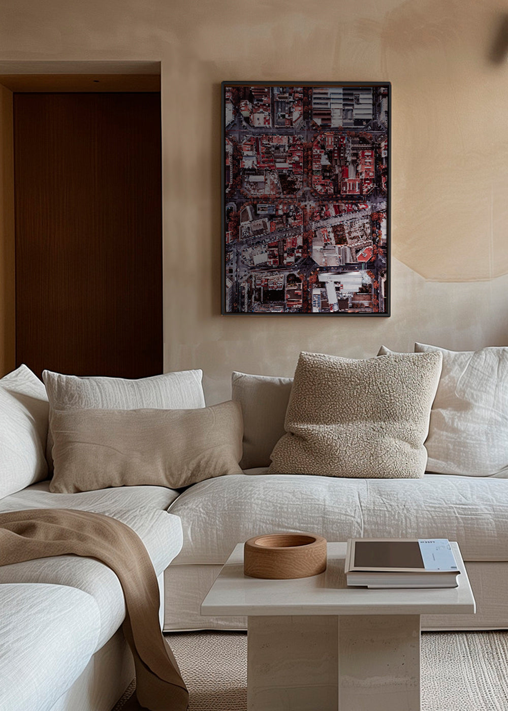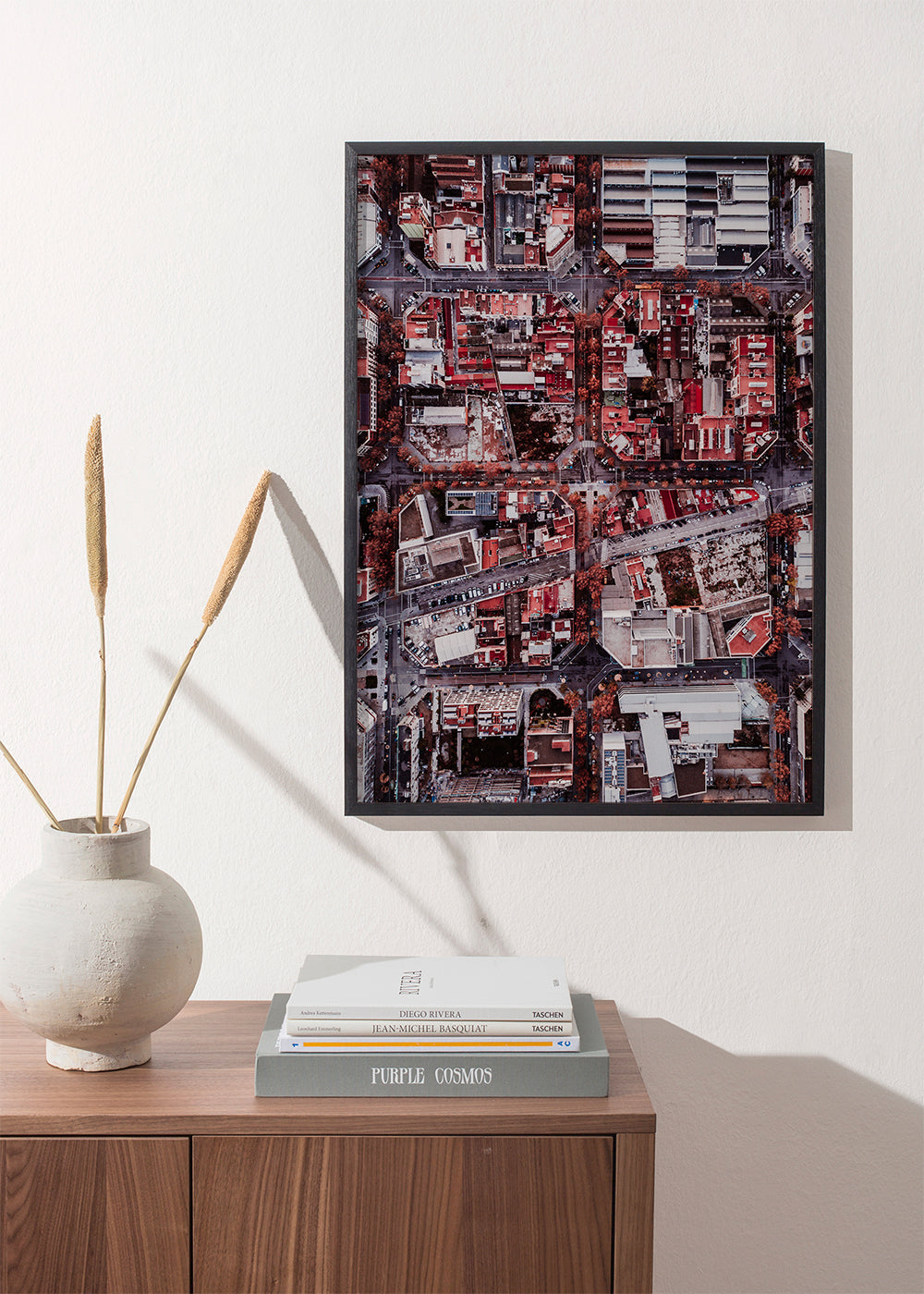 Beautiful design from our architecture wall art and prints collection, from the Chris Abatzis collection, with red pigments, and to hang in vertical position. Combine skylines, photos and city maps to create a composition for those with wanderlust. Get swept away by art.