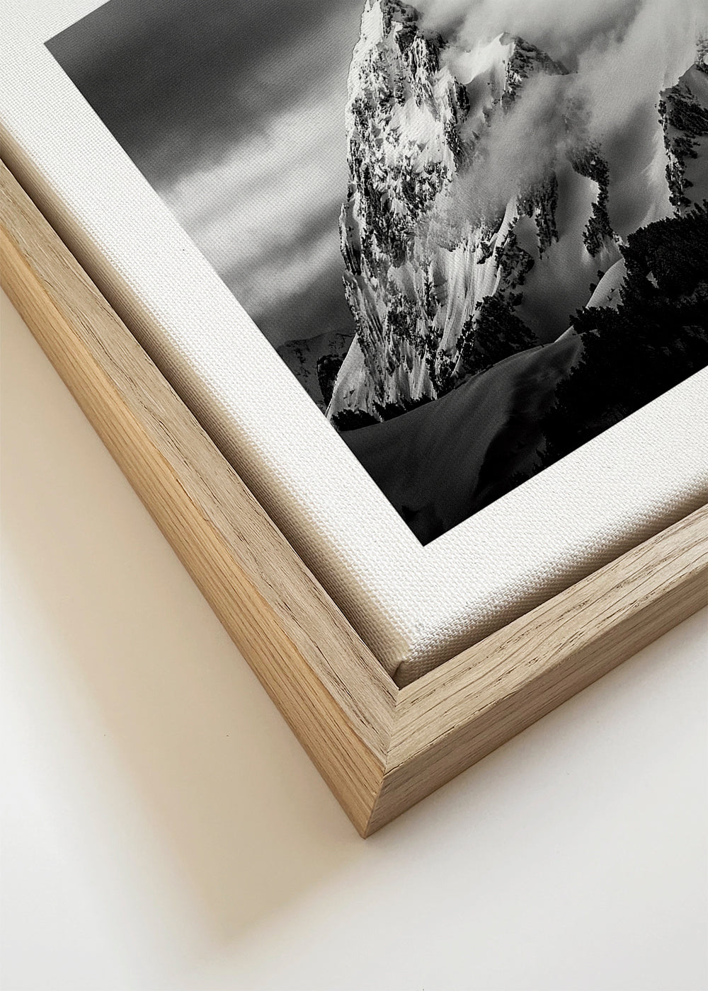 The canvas or photo canvas is a cloth supported by a wooden underframe on which our works of art are printed. Our modern canvas uses the highest quality fabric and pine wood for the 1.4 in deep underframe.