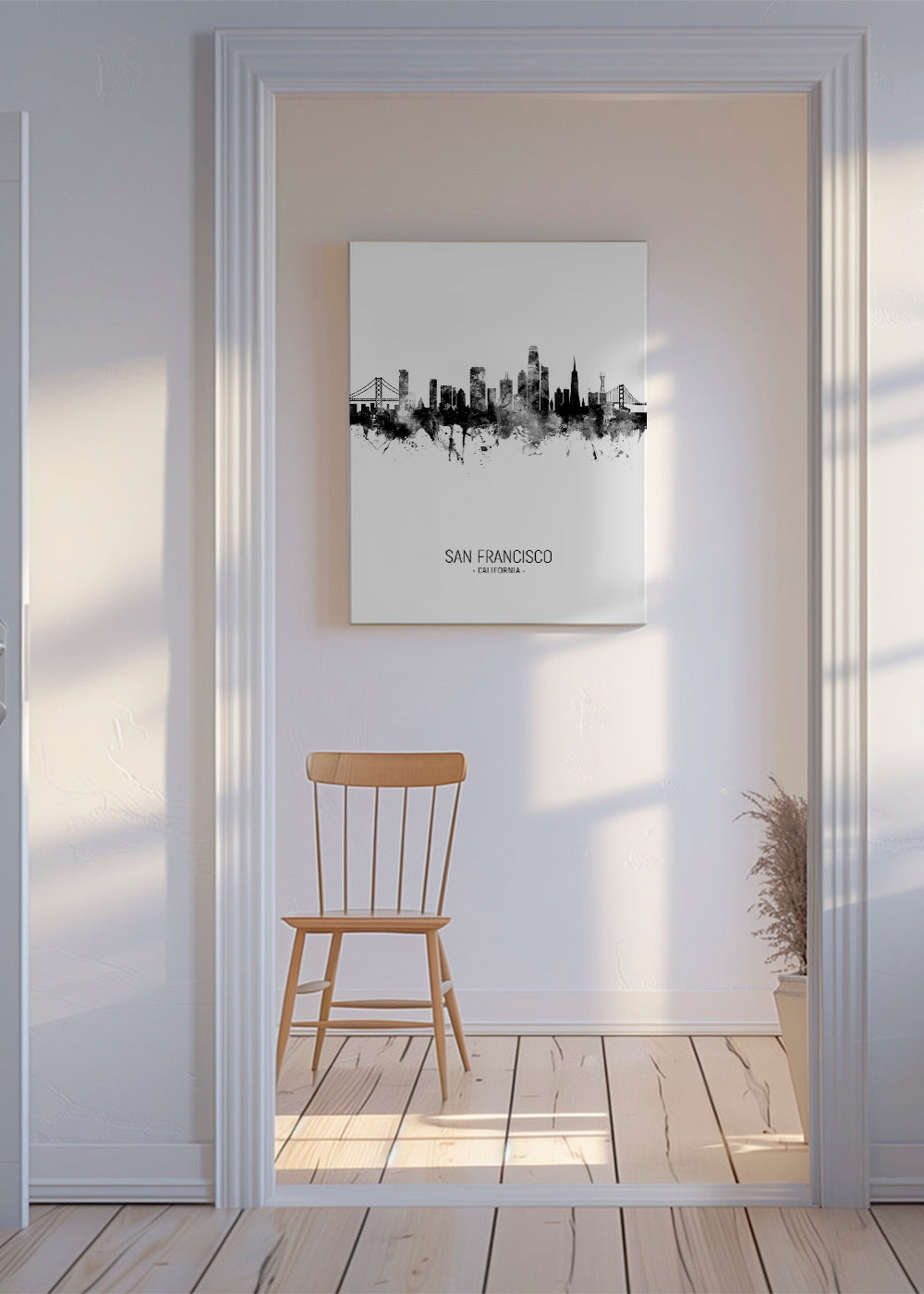 Beautiful design from our skylines canvas series, an original by Michael Tompsett, with tones of black and white, and with vertical layout. Our map and city prints are perfect for those who love cities and architecture. Transform your spaces with art.