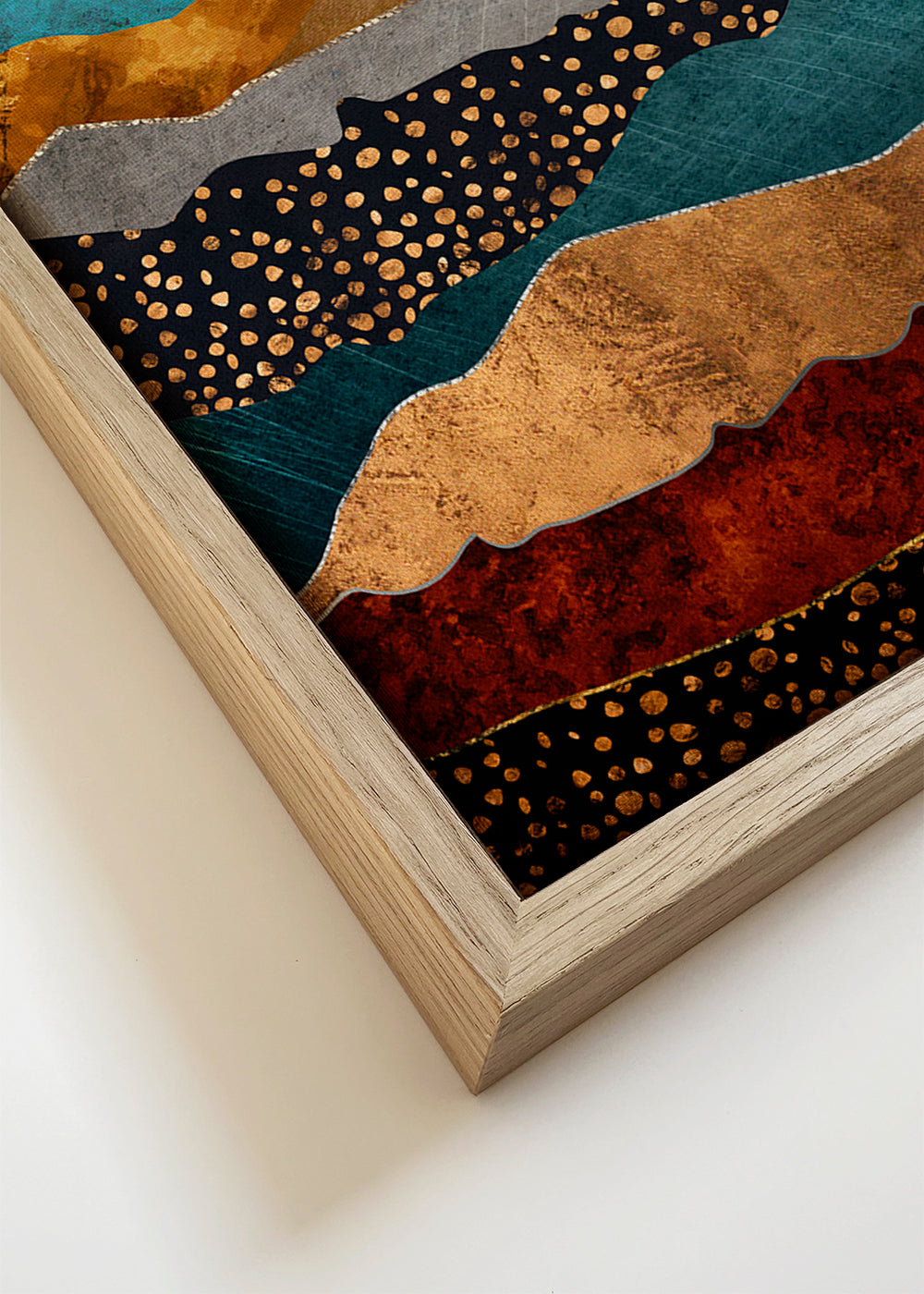 All our frames are manufactured in Spain. The white, black and oak frames are made of Ayous wood, and the oak ones are veneered in oak, while the metallic ones are made of aluminum.