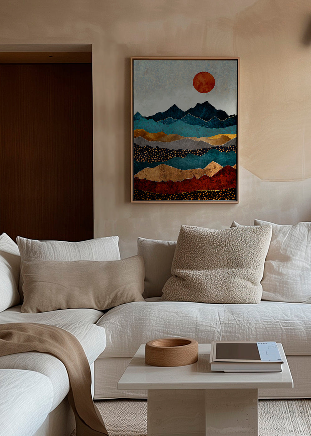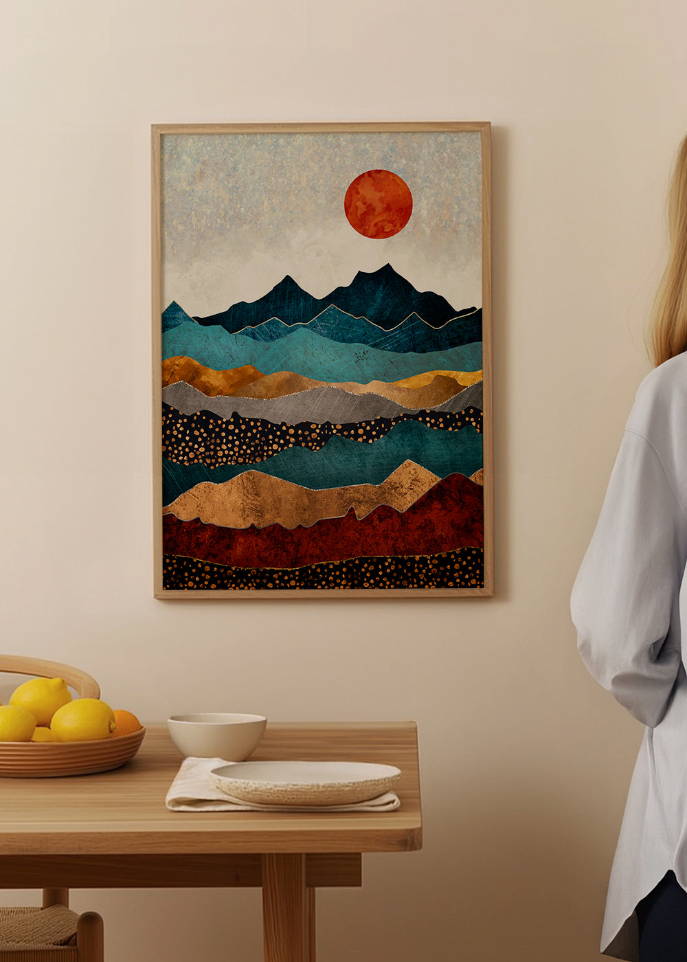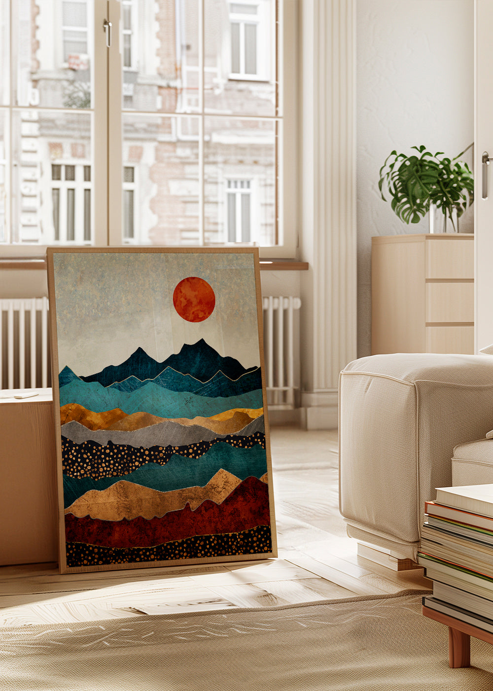 Beautiful print from the landscape wall art series, from the collection of the artist SpaceFrog Designs, with red, and to hang in vertical position. A beautiful landscape perfect for pairing with other nature prints. Fill your walls with art.