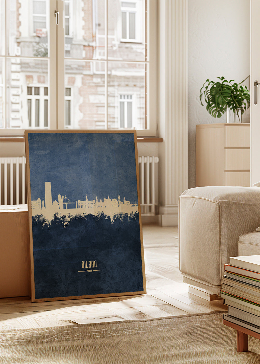 A design from the skylines canvas category, an original by Michael Tompsett, with shades of blue, and with vertical layout. A perfect piece for the eternal traveller. Pair it with our map and city prints. There are no ugly or beautiful walls, just empty or full ones.