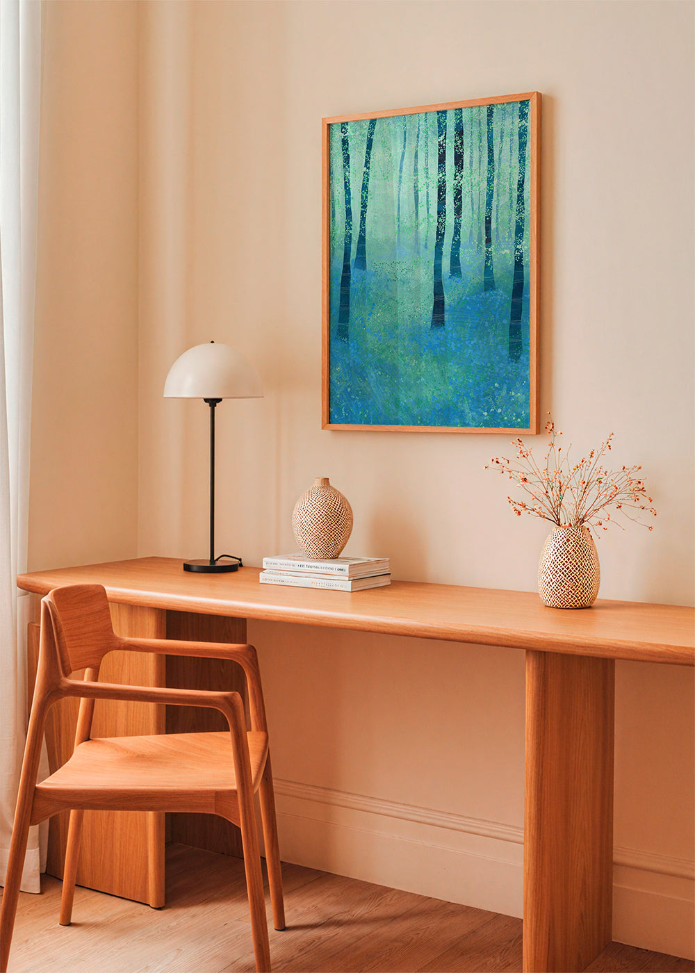 Beautiful piece from our scandinavian wall art series, from the collection of the artist Nic Squirrell, with tones of blue, and to hang in vertical position. With its sombre, meticulous design, minimalist art brings calm elegance to any space in the home. This is the print your wall has been looking for.
