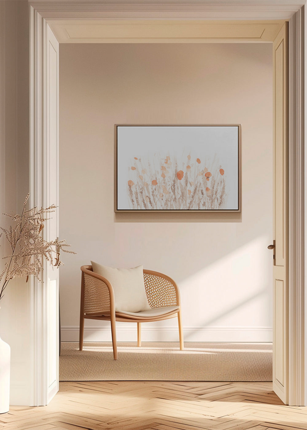 Beautiful piece from the botanical prints and wall art category, by the artist Nouveau Prints, in tones of orange, and horizontal layout. Nature in all its splendour, landscape prints convey a sense of calm. A piece that will be a plus for any room.