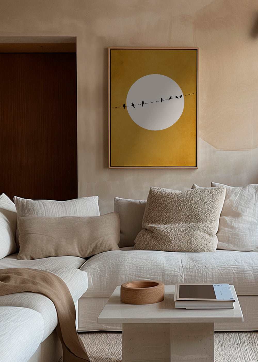 Beautiful poster in the style of our sunrise and sunset wall art, an original by Kubistika, with yellow, and in vertical position. Illustrated prints give your home decor a touch of originality. There are no ugly or beautiful walls, just empty or full ones.