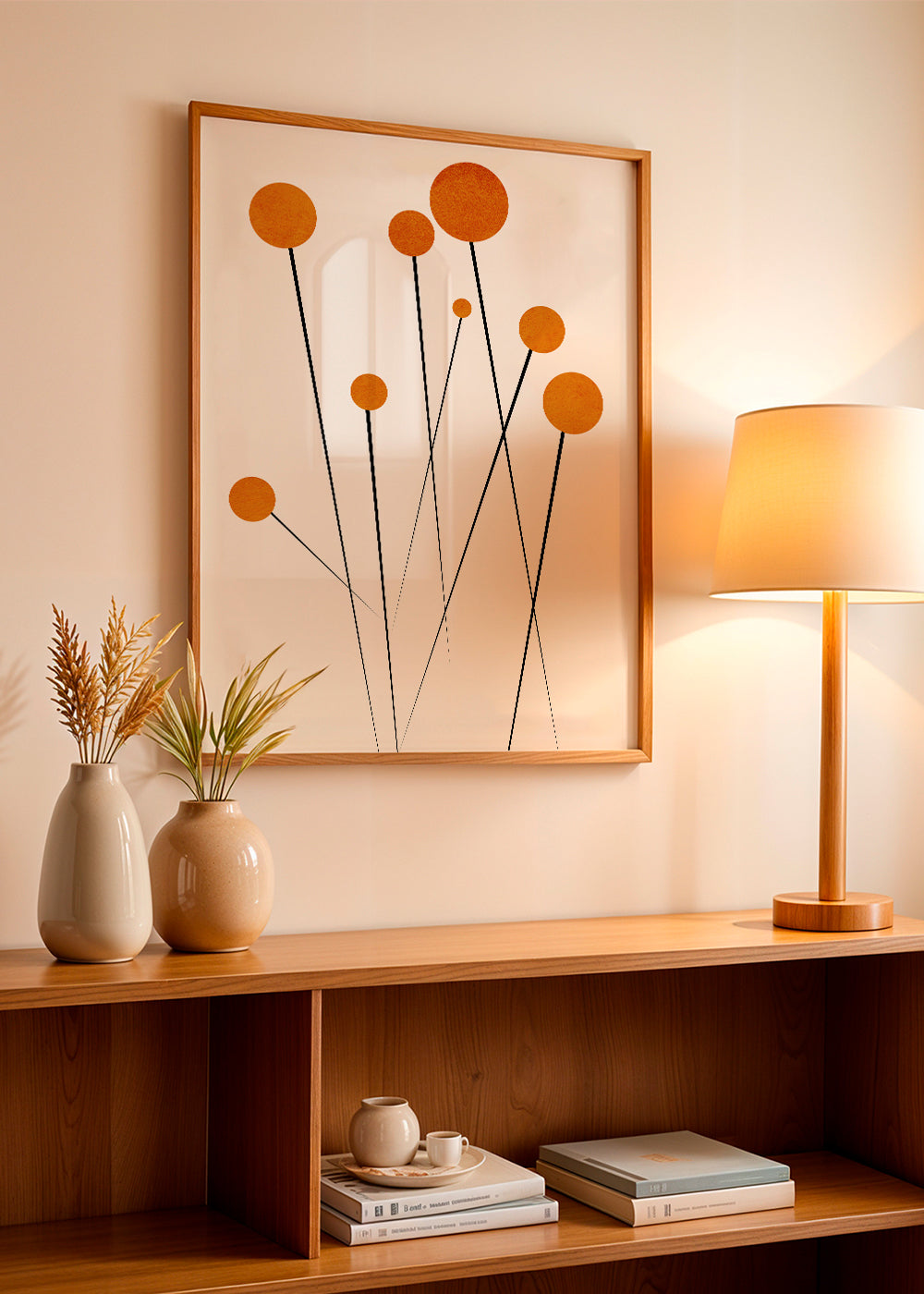 A poster inspired by the collection of botanical prints and wall art, by Kubistika, with yellow tones, and to hang in vertical position. A perfect piece for spaces bursting with art and creativity. Our drawings are perfect for decorating empty or boring spaces. Give your rooms a fresh look with art.