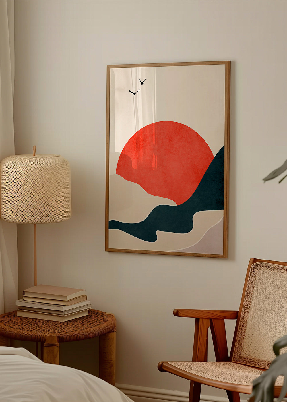 A piece from our repertoire of landscape wall art, from the collection of the artist Kubistika, with red pigments, and with vertical layout. The tranquillity and freedom of landscape prints is one of a kind. Create a one-of-a-kind spot.
