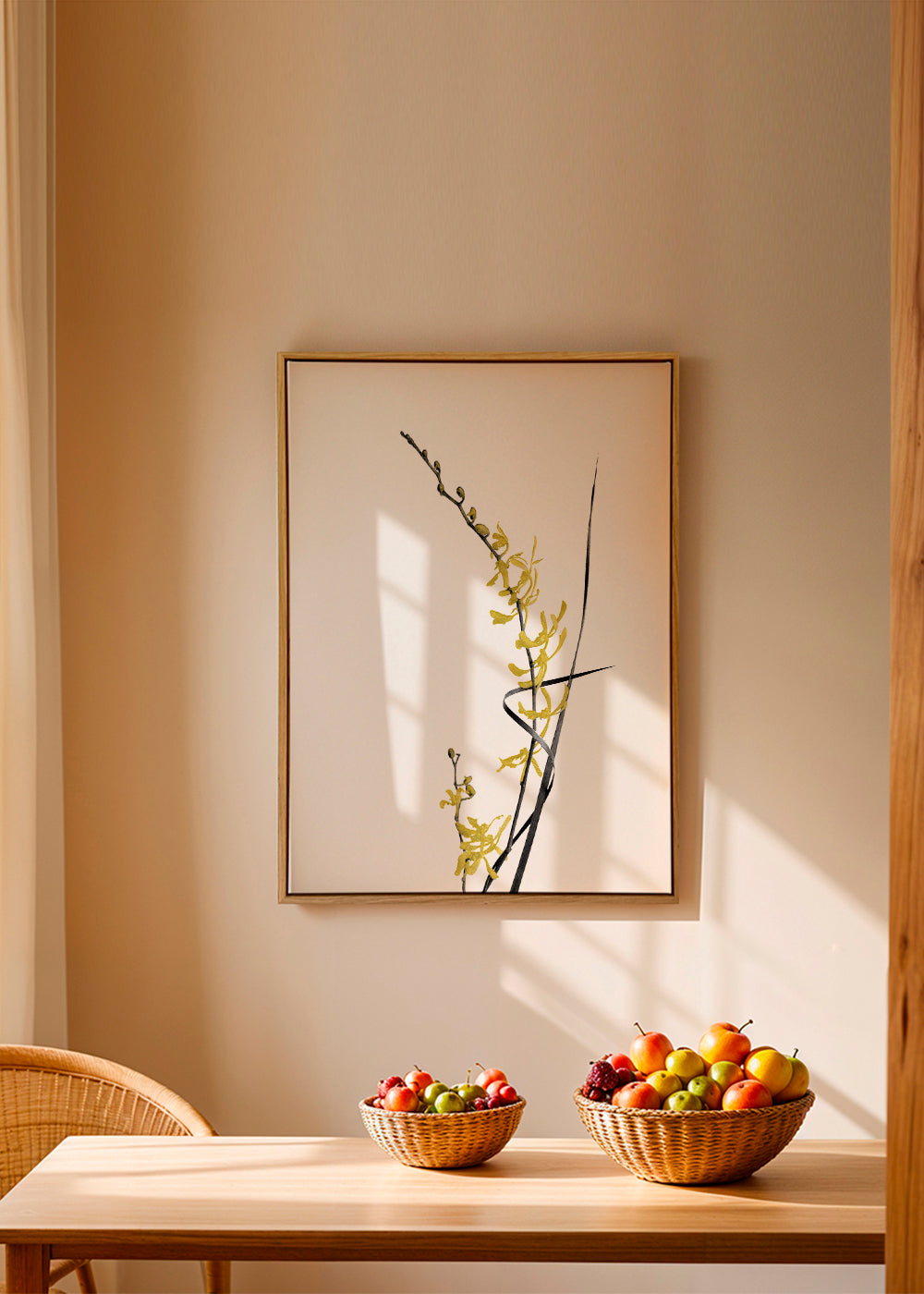 This piece from our repertoire of botanical prints and wall art, by amini54, in yellow shades, and with vertical layout. This botanical print is perfect for decoration full of nature. Create spots full of art.