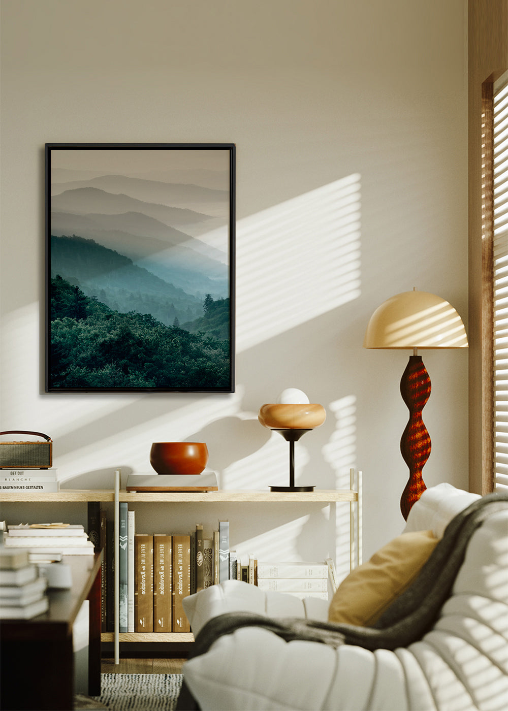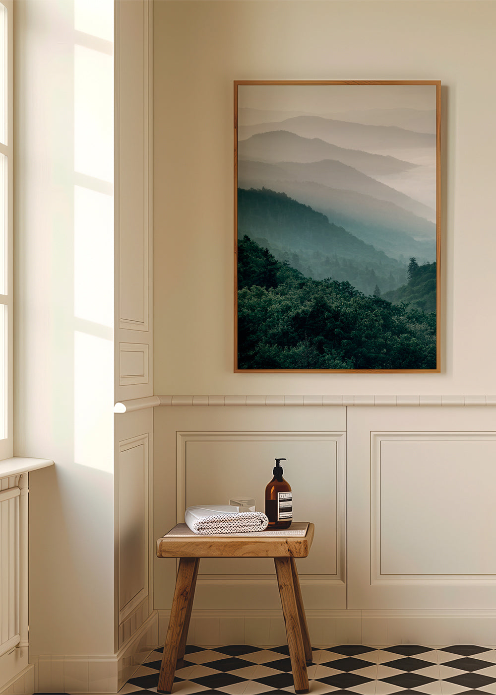 Beautiful print from our forest posters and wall art collection, in green shades, and facing vertically. Landscape decoration brings a breath of fresh air to any room. Elegance inspired by art.