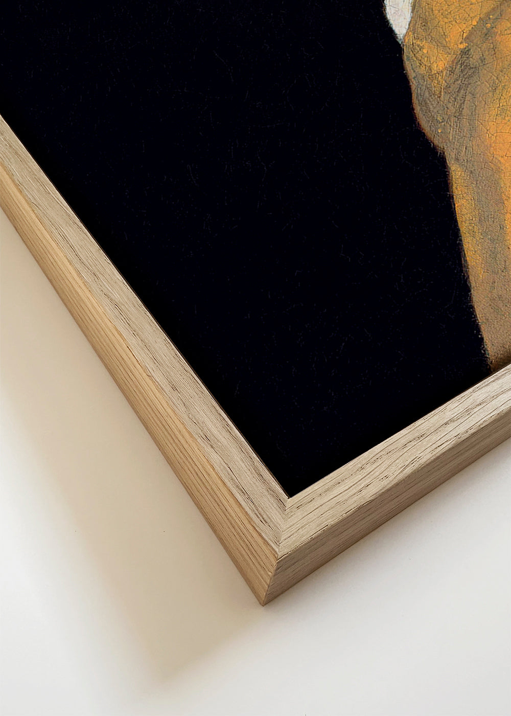 We use solid wood and aluminum frames. All framed artworks are shipped fully assembled and ready to hang right out of the box. The front protection is crystal-clear acrylic.