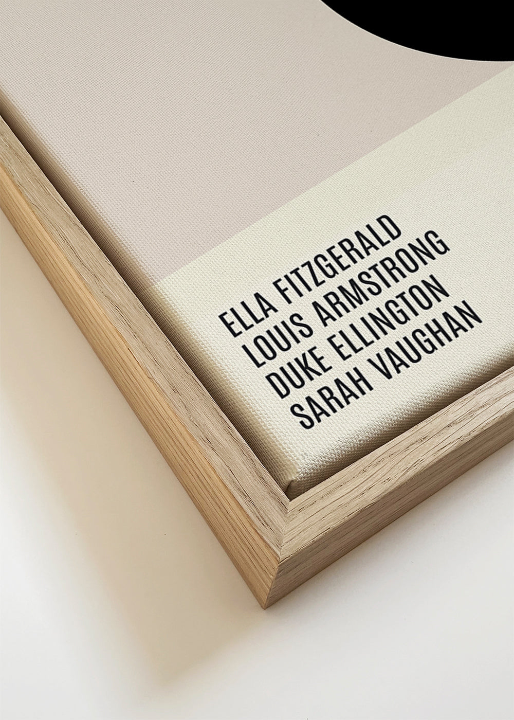 This print in the style of our jazz music posters, by Kubistika, in black shades, and vertical layout. The abstract, geometric shapes help create a casual, creative setting. Create your favourite spot.