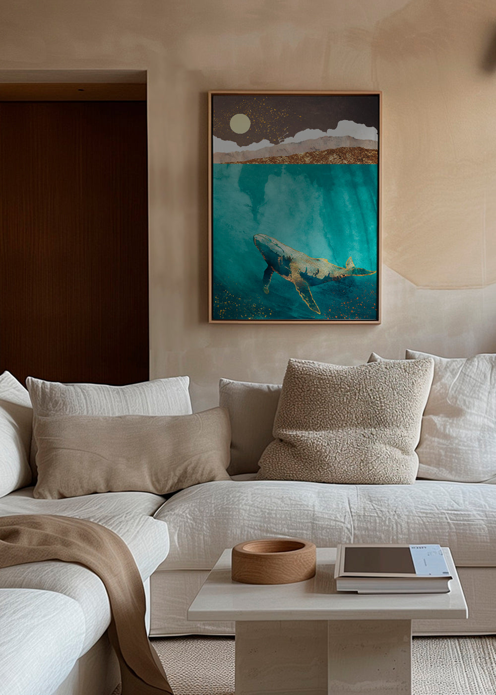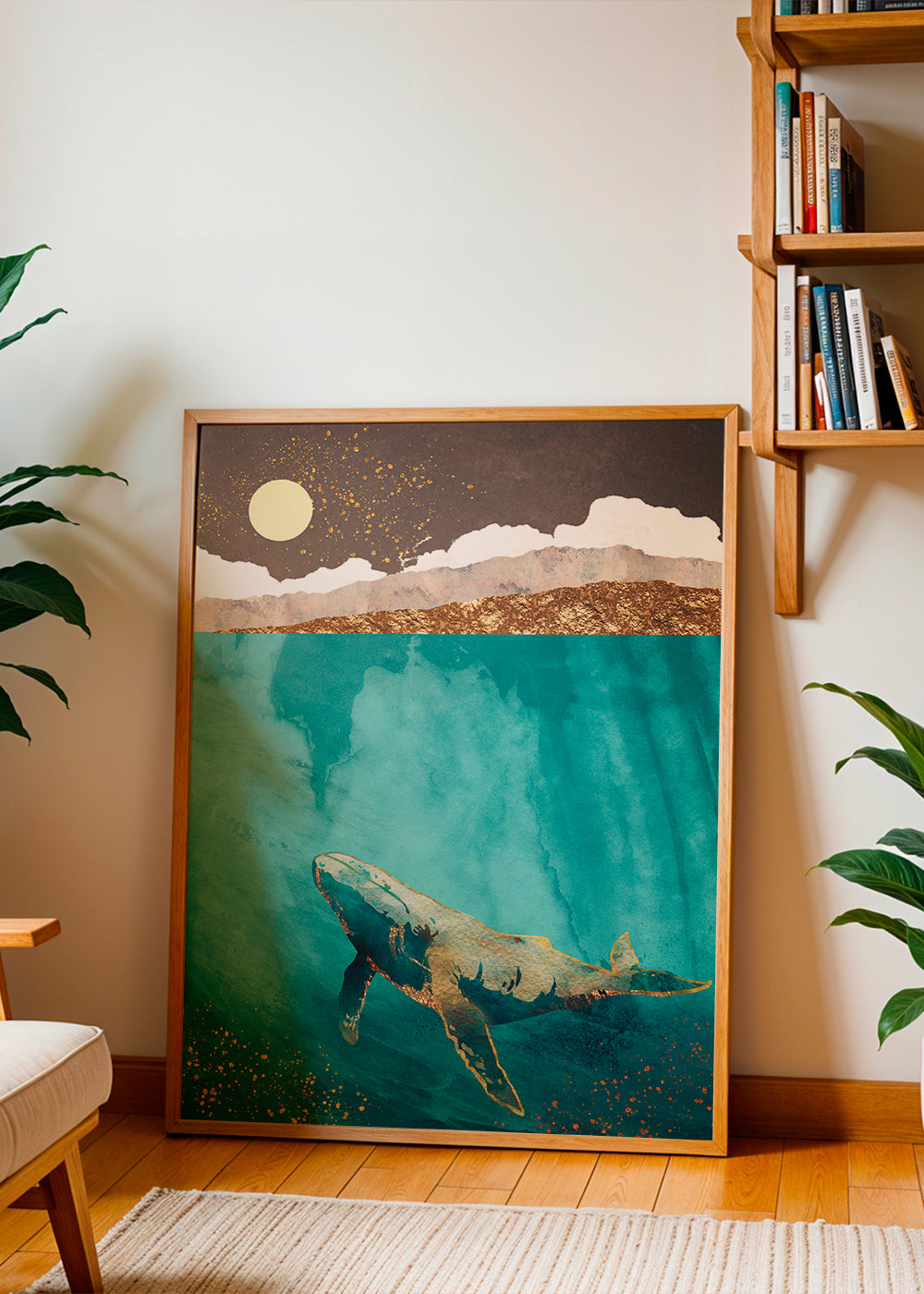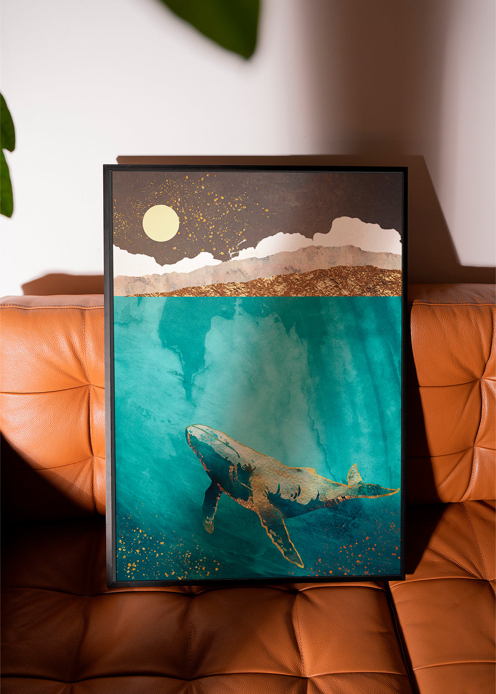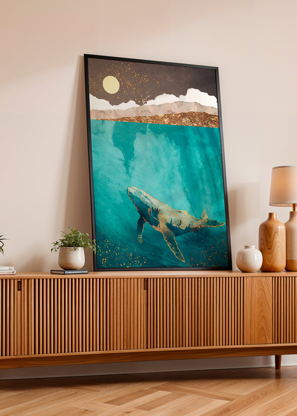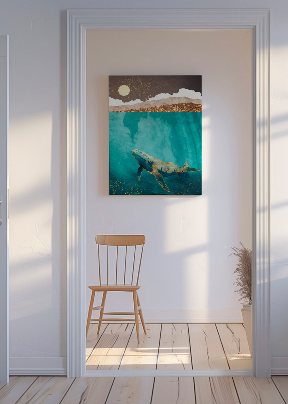 A design inspired by the collection of animal wall art, an original by SpaceFrog Designs, with tones of blue, and with vertical layout. Nature in all its splendour, landscape prints convey a sense of calm. Your home decor is in your hands.