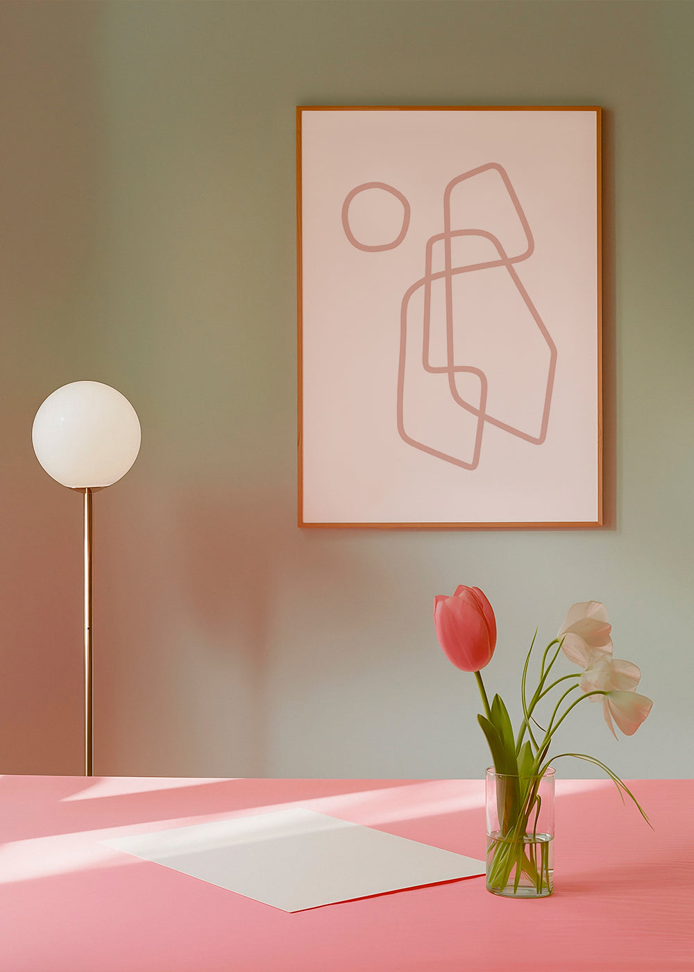 Beautiful poster from our line art prints series, an original by Nouveau Prints, with pink, and to hang in vertical position. Geometric art is an elegant style to decorate the walls of your home with. Make your house a stylish home.