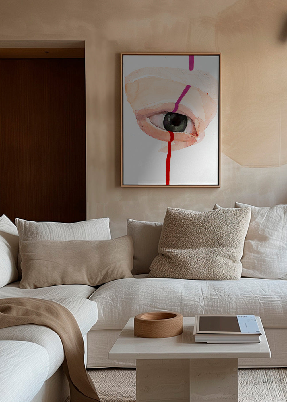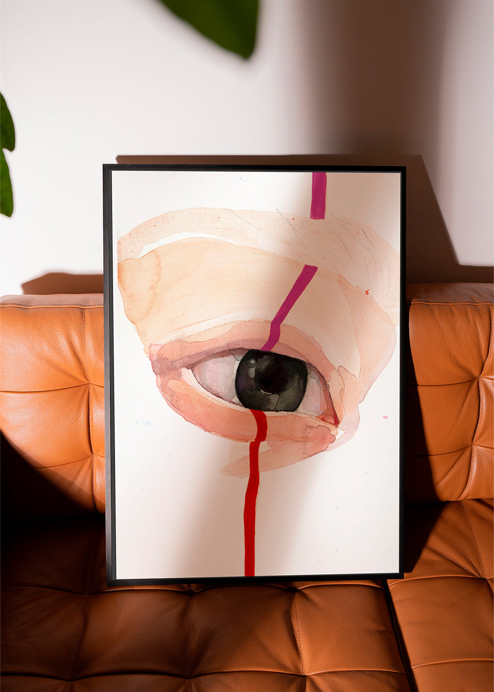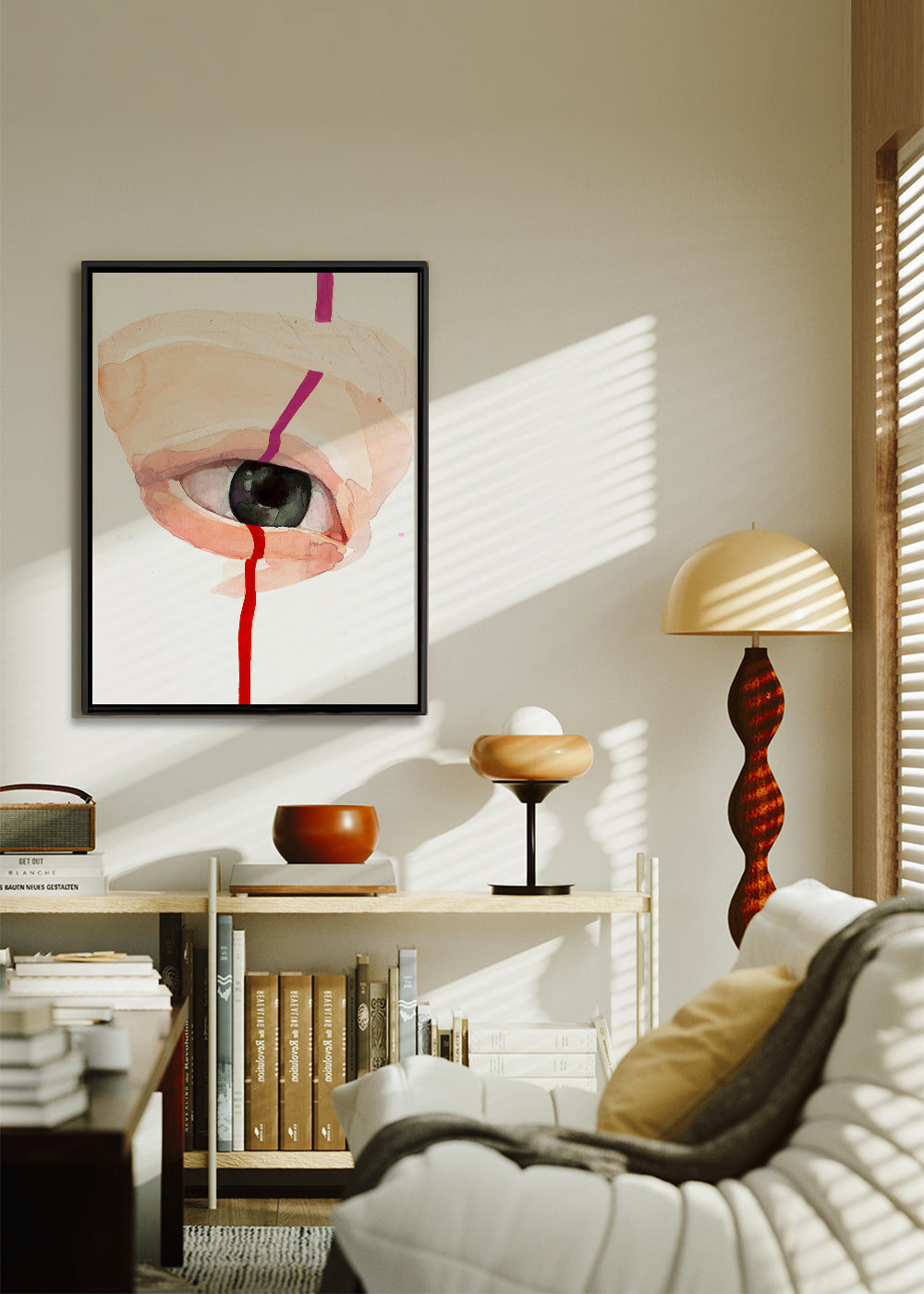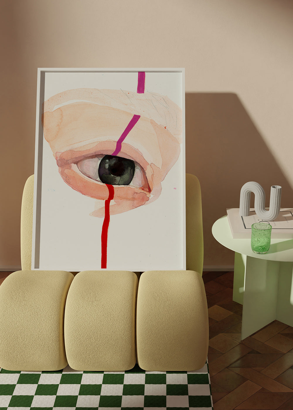 A poster in the style of our illustration wall art, by the artist Sophia Novosel, with red, and with vertical layout. The drawing is simple and clean, so you can pair it with other illustrations for an artistic composition. Create your favourite spot.