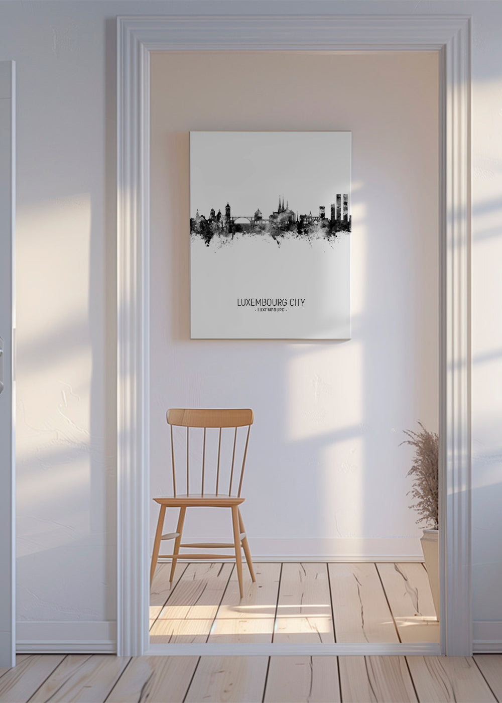 A poster from our skylines canvas series, made by Michael Tompsett, with touches of black, and vertical layout. If you love wandering around discovering new parts of the world, this print is for you. The final touch for your home decor.