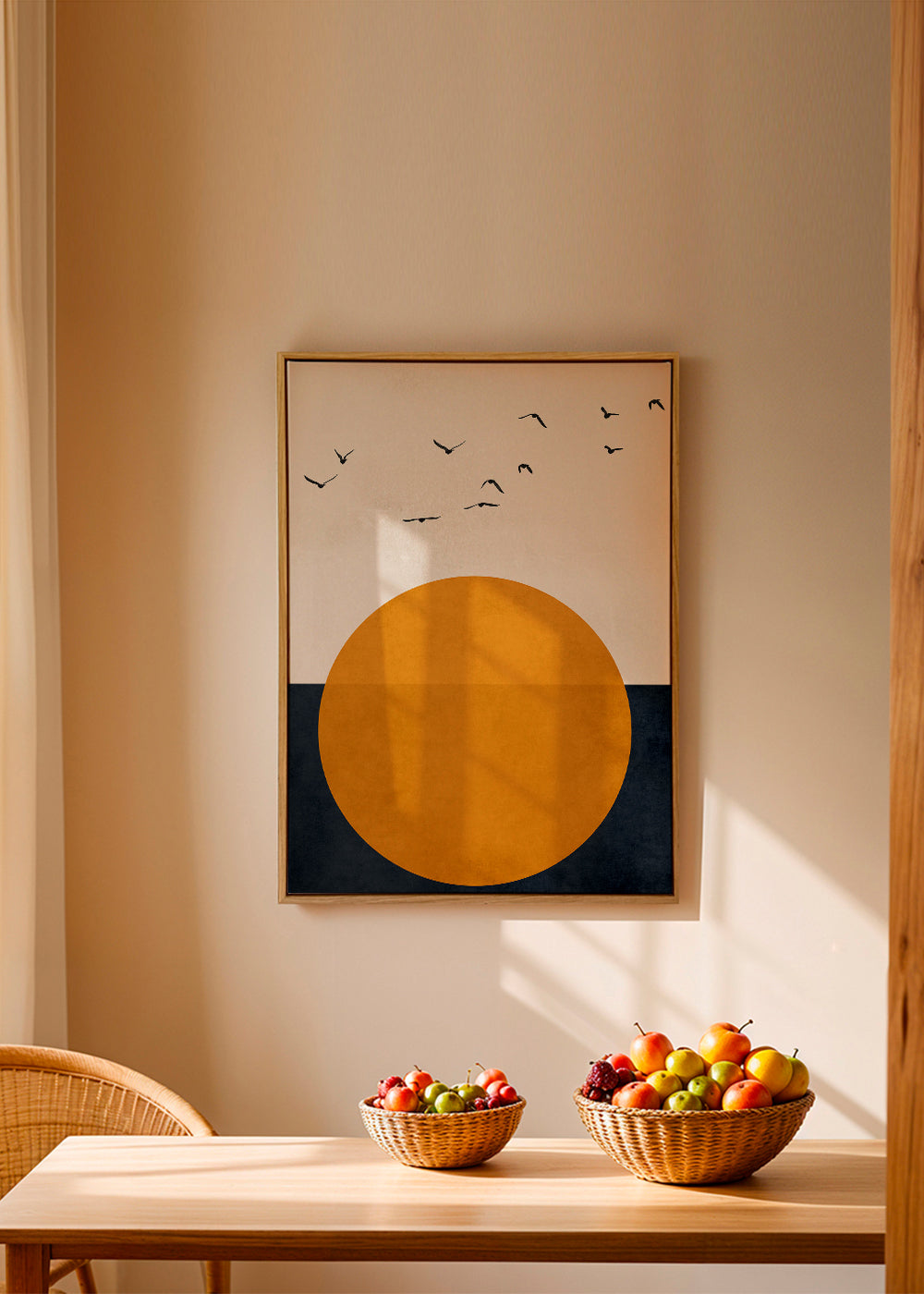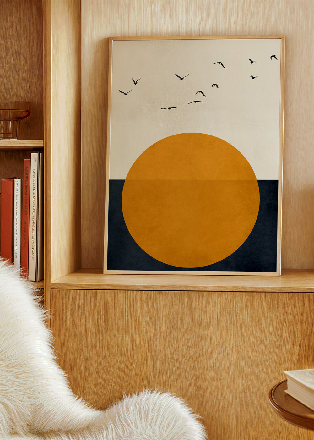 A poster from the birds wall art category, from the collection of the artist Kubistika, with yellow tones, and facing vertically. Nature in all its splendour, landscape prints convey a sense of calm. Build a home full of design and creativity.