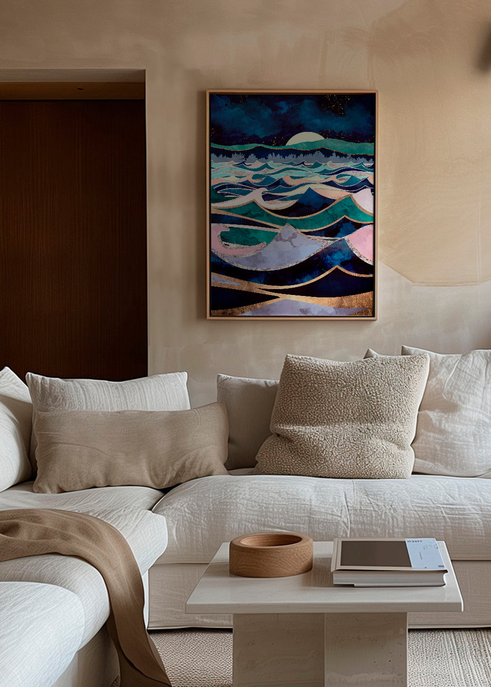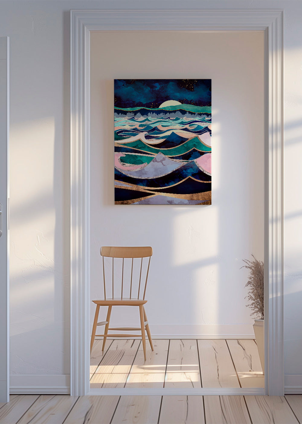 Each canvas is hand-stretched over a wooden frame. The depth is 1.2" for unframed canvases and 1.6" for framed canvases (3 cm and 4 cm).
