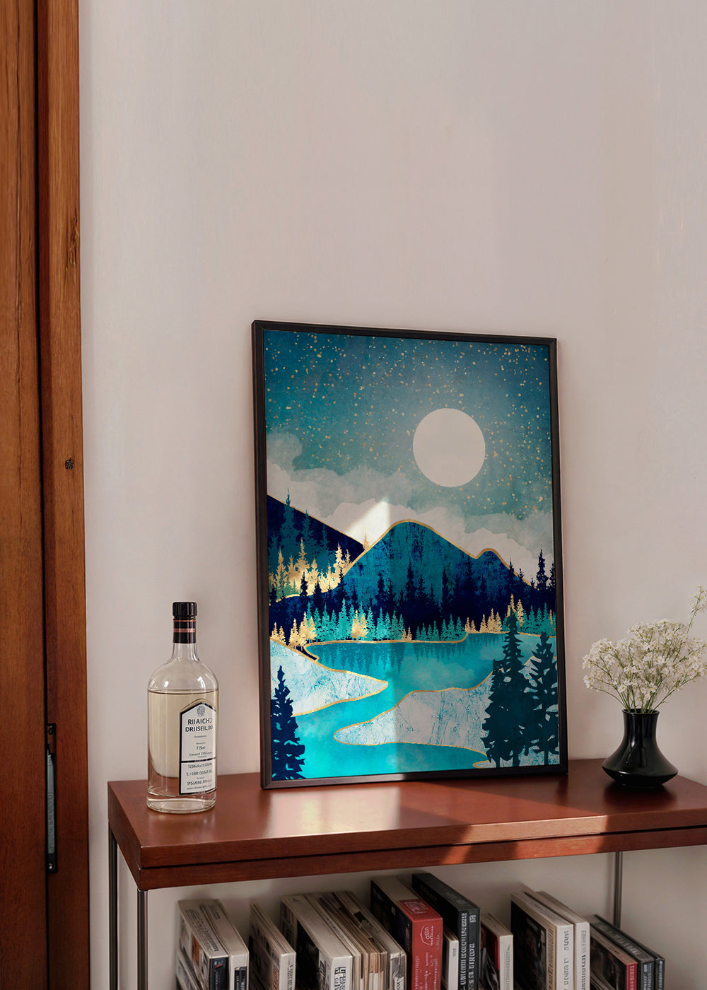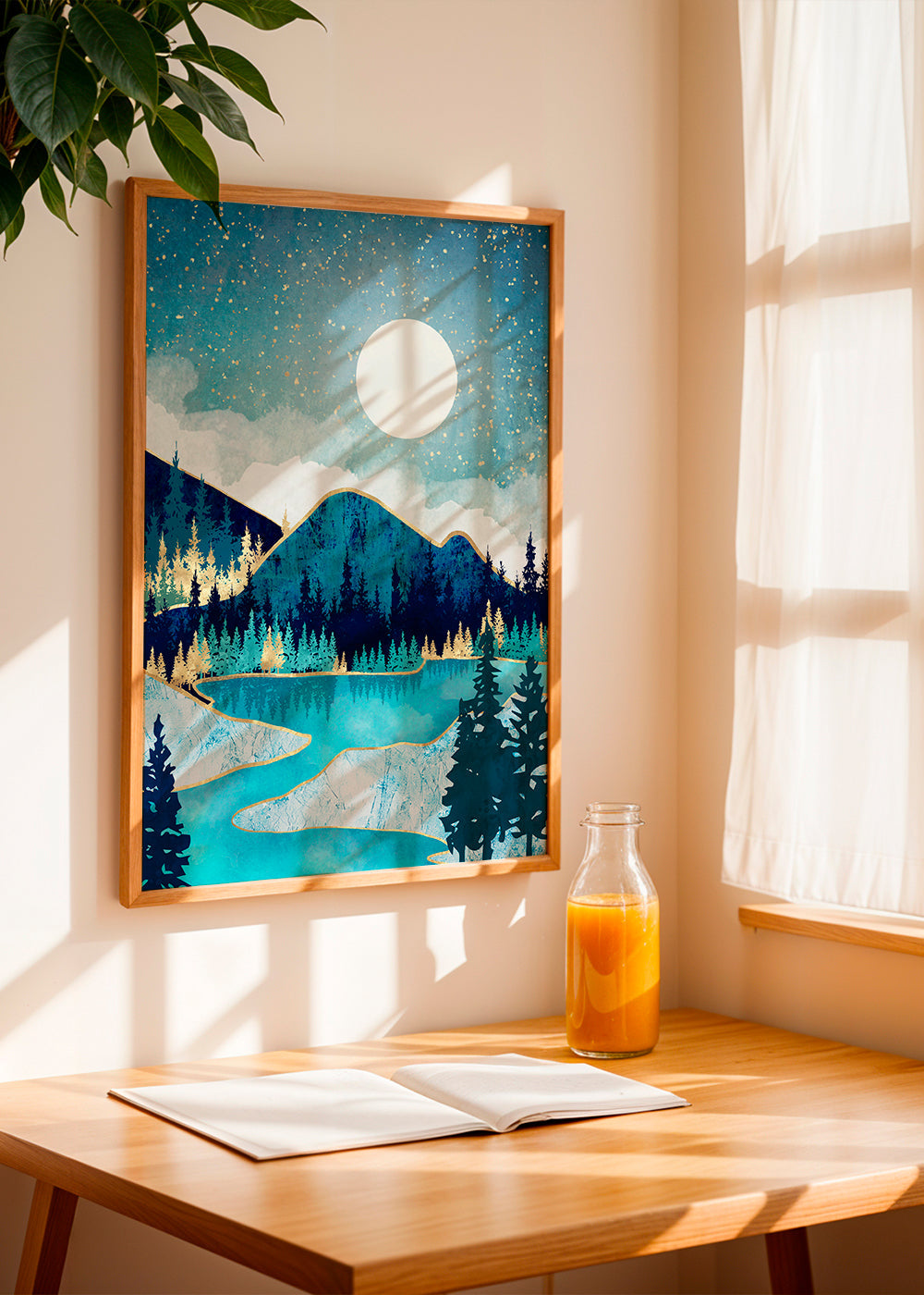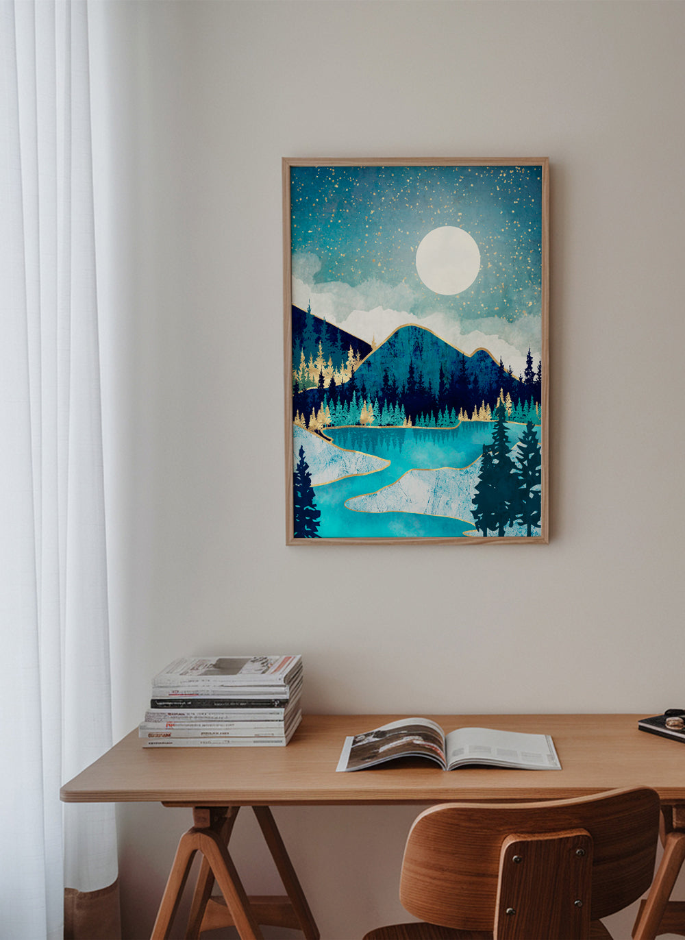 This poster from the landscape wall art collection, an original by SpaceFrog Designs, in tones of blue, and vertical layout. The tranquillity and freedom of landscape prints is one of a kind. The perfect combination of originality and design.
