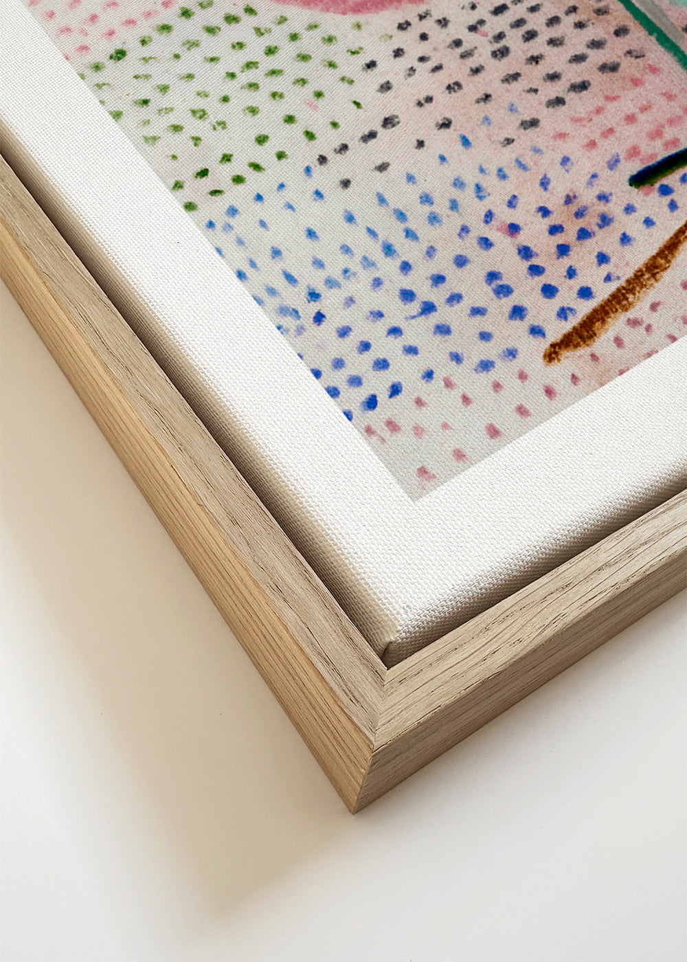 If you select the passepartout option, we will add the white matt board to the frame, and we will reduce the design of the work. For example, if you select a print size 20x28 in, with an oak colored frame and passepartout, we will reduce the design of the print to the previous size (16x20 in). In this way, it will adapt perfectly to the inside window of the passepartout.