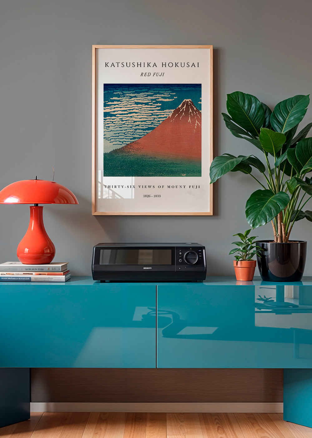 Beautiful print from the japanese wall art category, with tones of red, and to hang in vertical position. If you're looking for a retro element to add to your decor, this design is perfect for you. Pair it with other vintage posters for a highly original style. Build a home full of design and creativity.