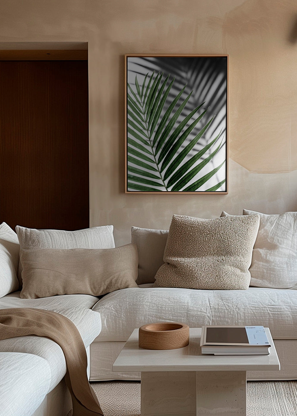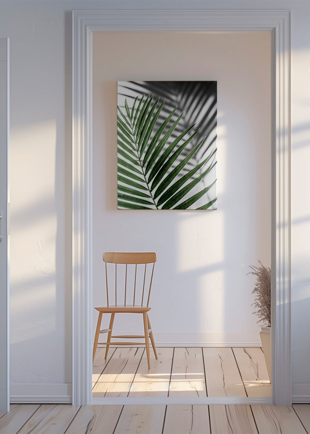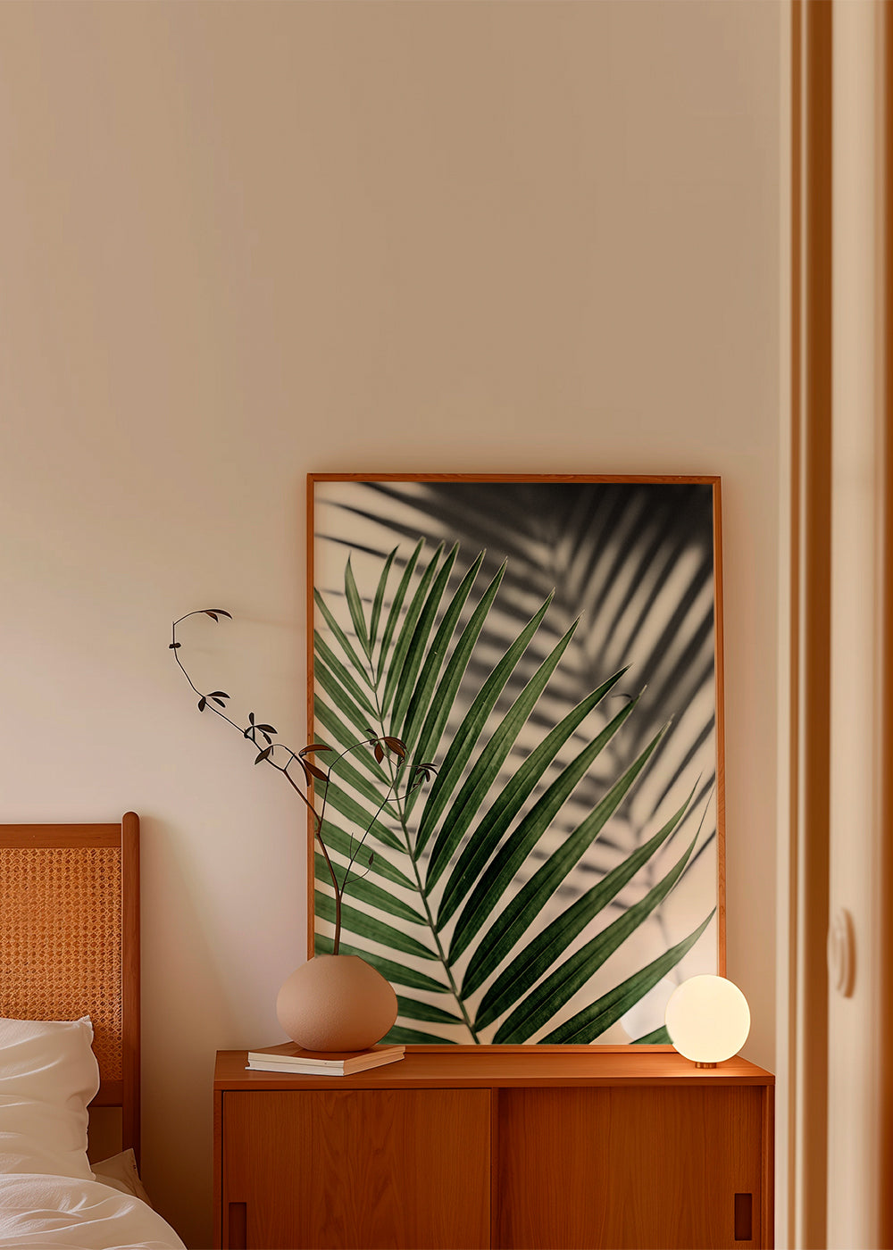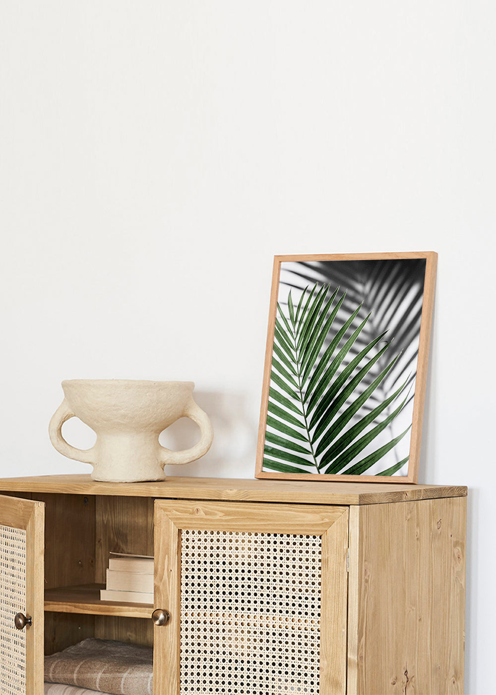This poster from the palm tree prints collection, by creative artist Mareike Böhmer, with green tones, and perfect to hang vertically. Create a vertical garden by pairing this piece with other prints with flowers and plants. Pure art and design.