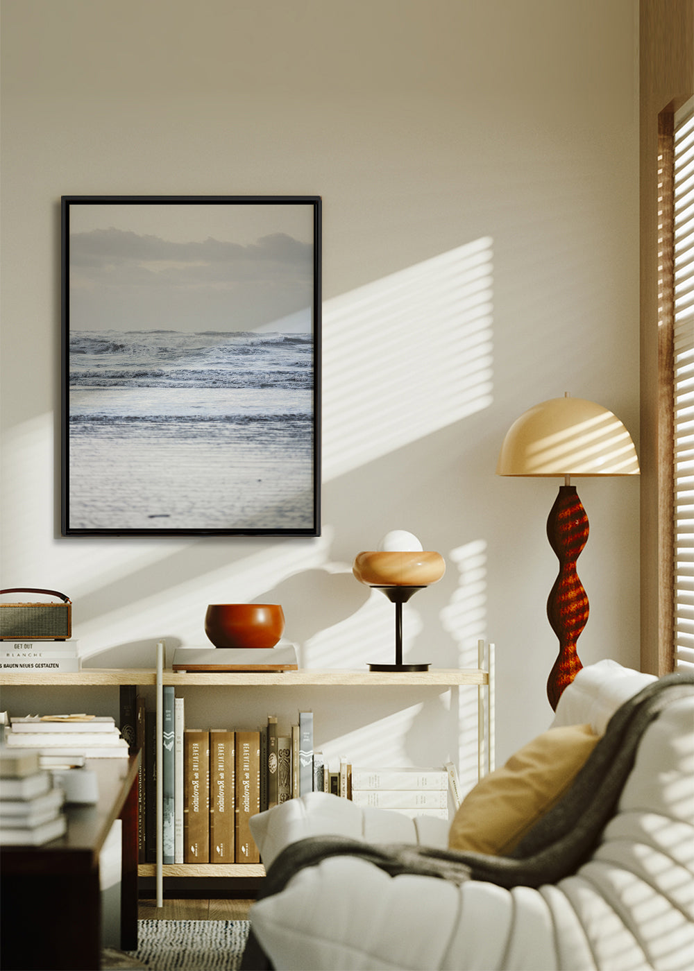A print from our repertoire of beach wall art, created by Mareike Böhmer, with tones of blue, and facing vertically. Landscape decoration brings a breath of fresh air to any room. Create a one-of-a-kind spot.