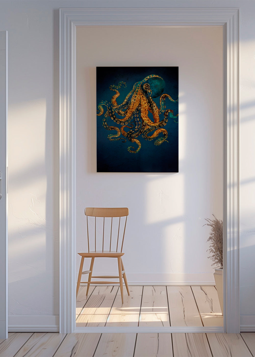 Beautiful print from our animal wall art category, an original by SpaceFrog Designs, with blue, and facing vertically. A beautiful landscape perfect for pairing with other nature prints. Elegance inspired by art.
