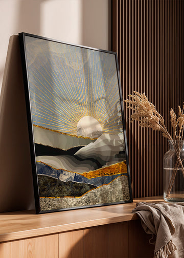 A poster from our selection of animal wall art, created by SpaceFrog Designs, in tones of blue, and facing vertically. A beautiful landscape perfect for pairing with other nature prints. The final touch for your home decor.