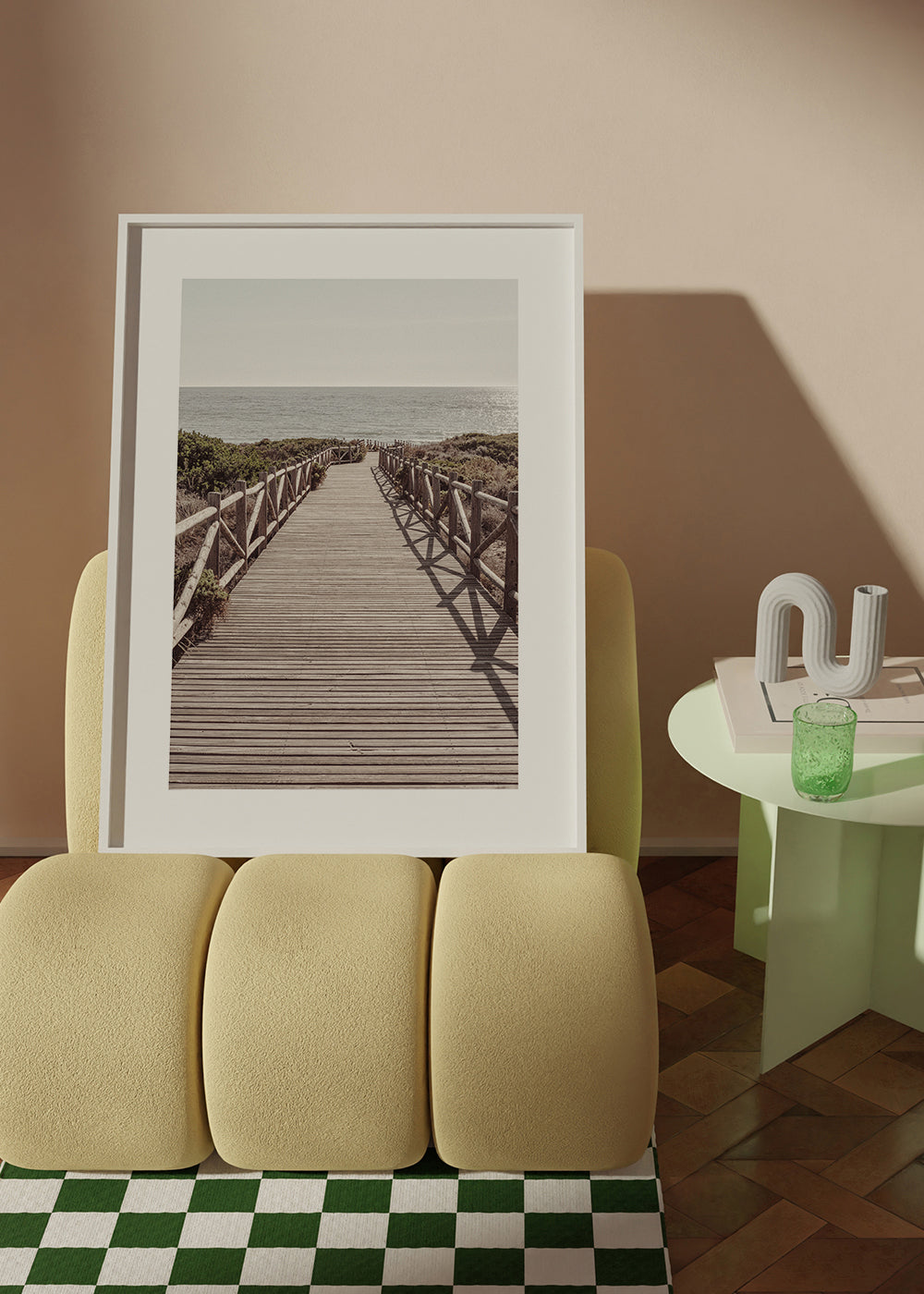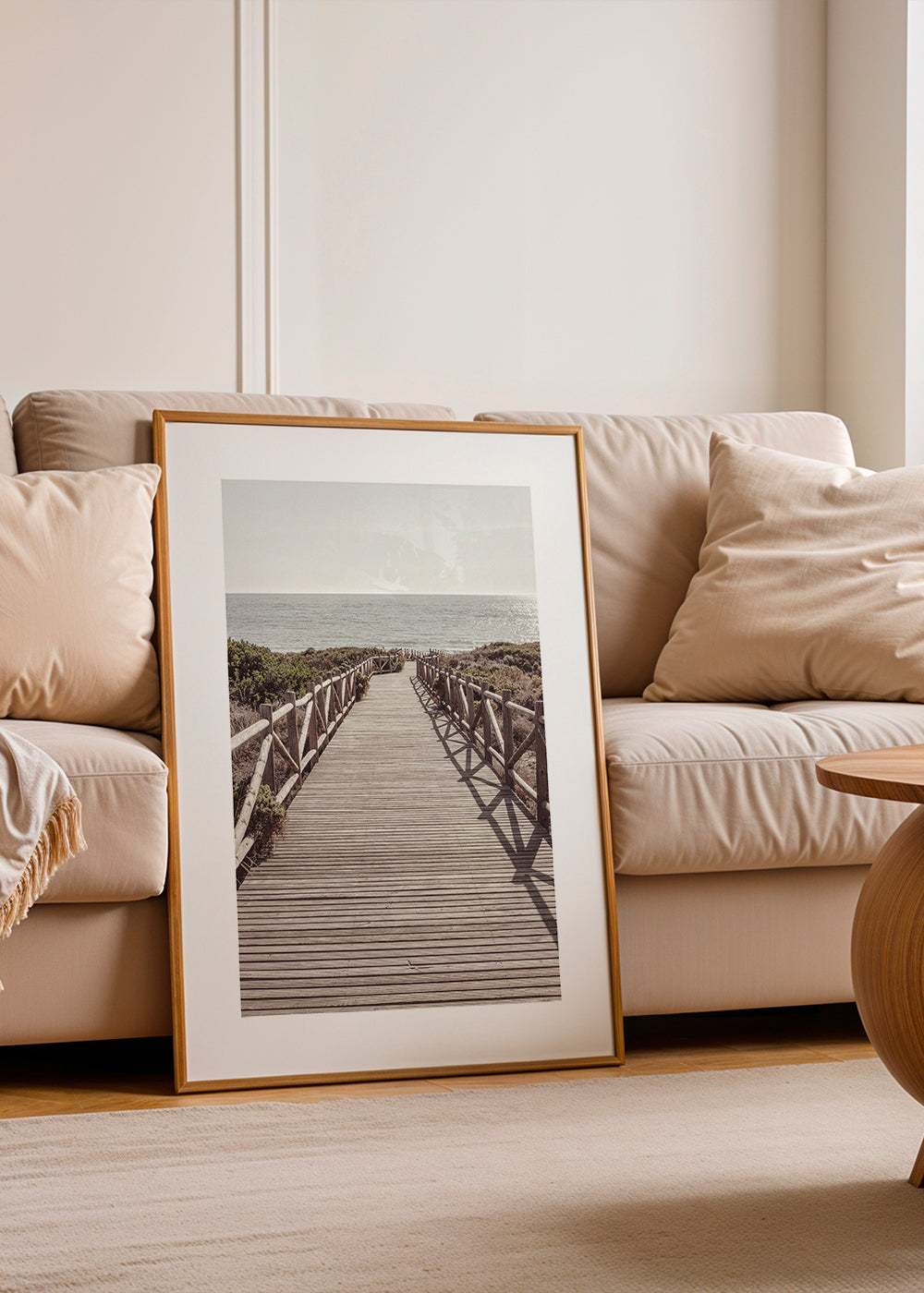 Beautiful piece inspired by the collection of beach wall art, in tones of brown, and to hang in vertical position. This design is perfect for spaces that convey calmness. Pair it with other relaxing prints for mindful decoration. Your home decor is in your hands. This piece includes a white strip framing the design to boost its style.