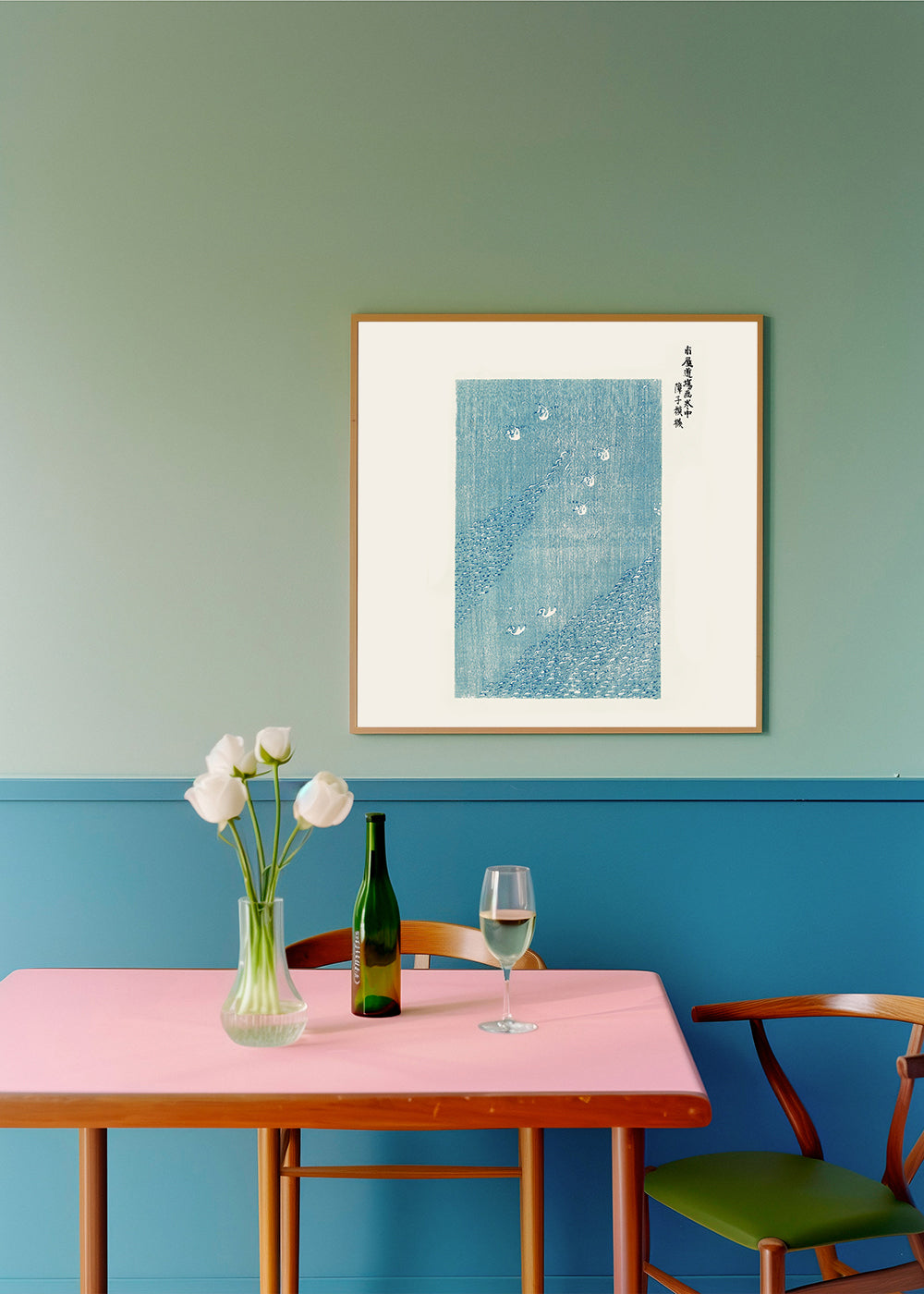 Scandinavian wall art Blue Birds Woodblock print from Yatsuo no tsubaki by Taguchi Tomoki - Square