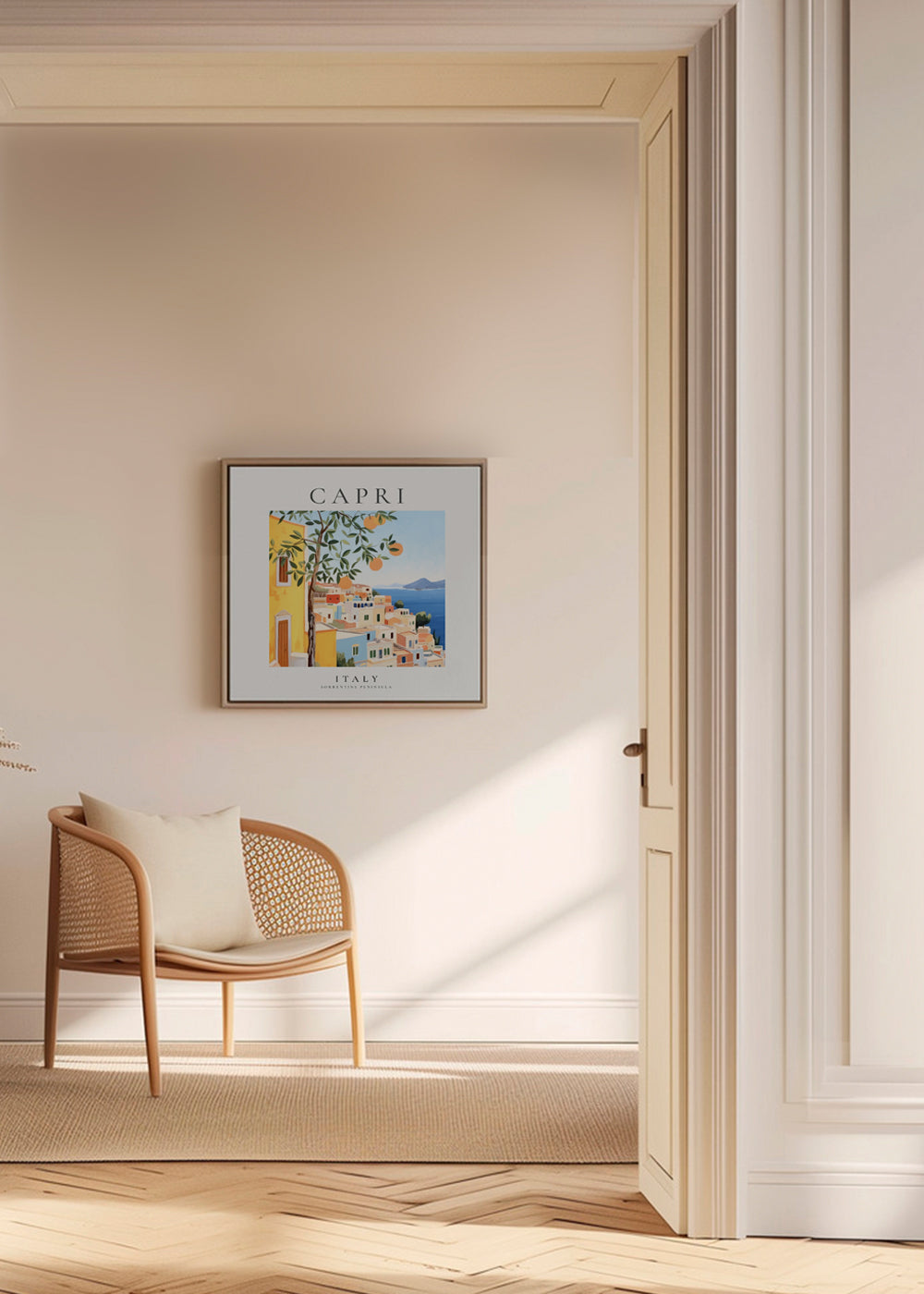 Beautiful print from the travel posters category, created by Seven Wall Art, with tones of multicolor. A perfect piece for the eternal traveller. Pair it with our map and city prints. Choose the size that best fits your decor.
