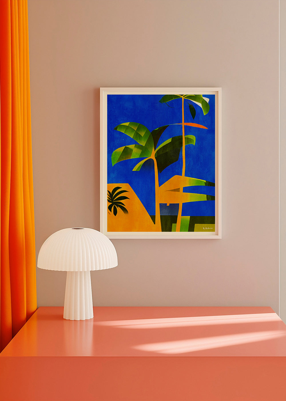 A design from the vintage wall art collection, by Bo Anderson, with tones of blue, and to hang in vertical position. A retro style that is perfect for a vintage look. There are no ugly or beautiful walls, just empty or full ones.