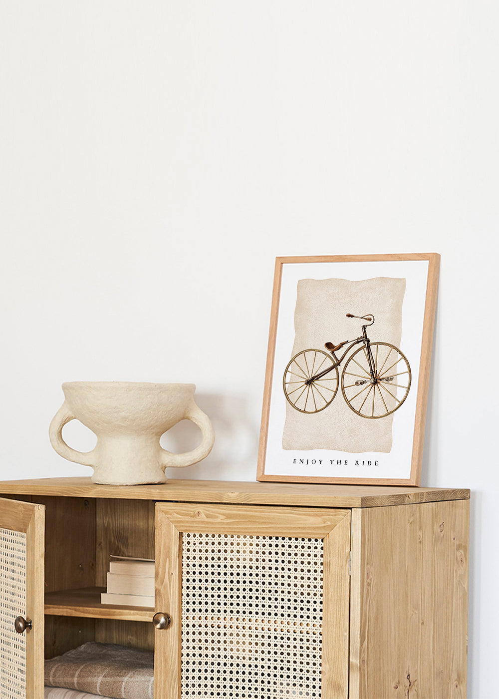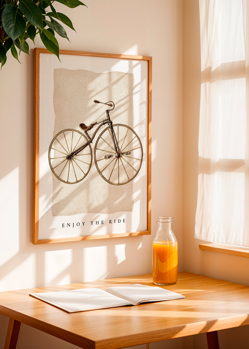 A piece from the bicycle wall art series, from the mind of Seven Wall Art, in brown shades, and vertical layout. Nordic-style prints and Scandinavian decoration are a match made in heaven. Your home decor is in your hands.