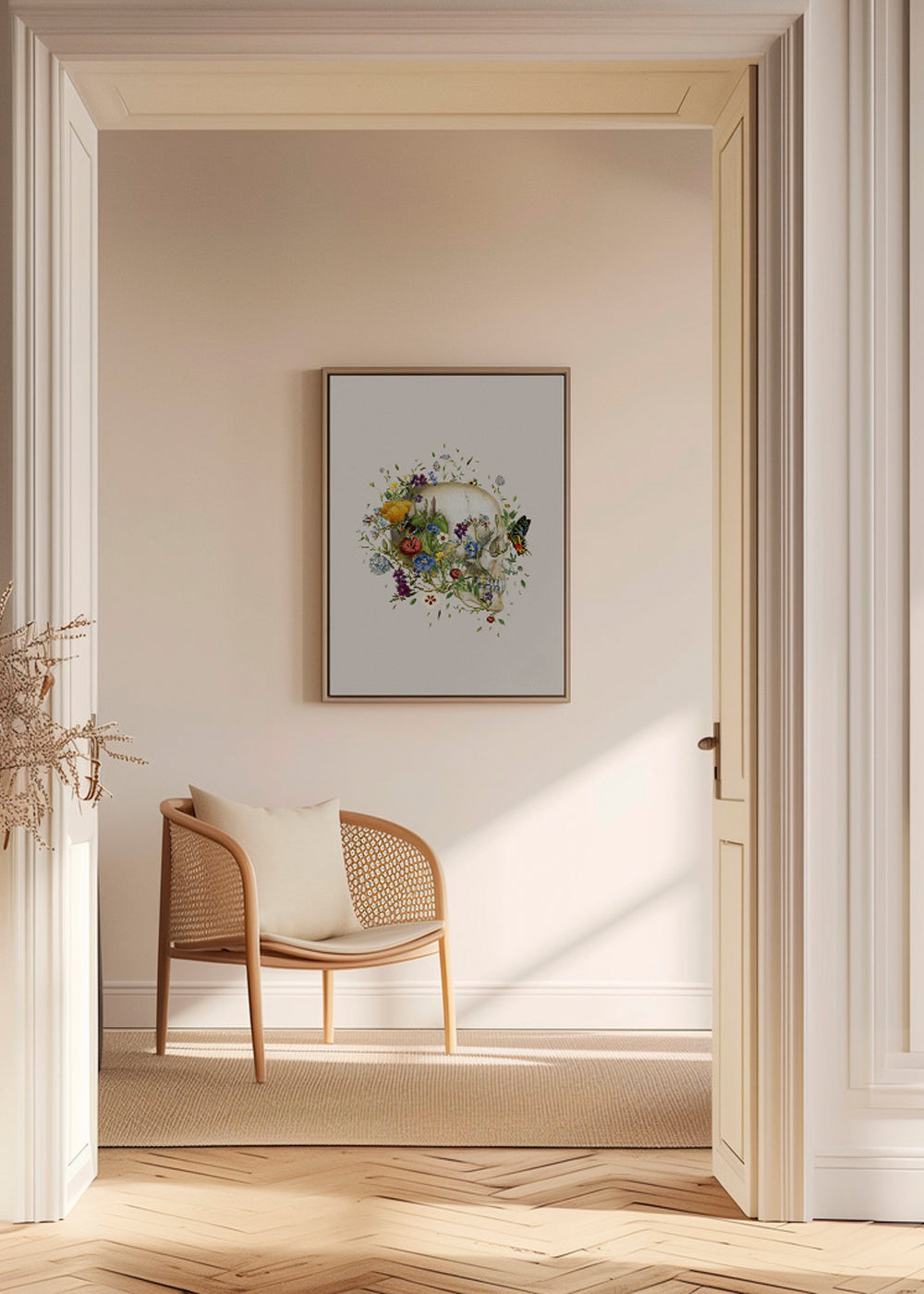 Scandinavian wall art Floral skull
