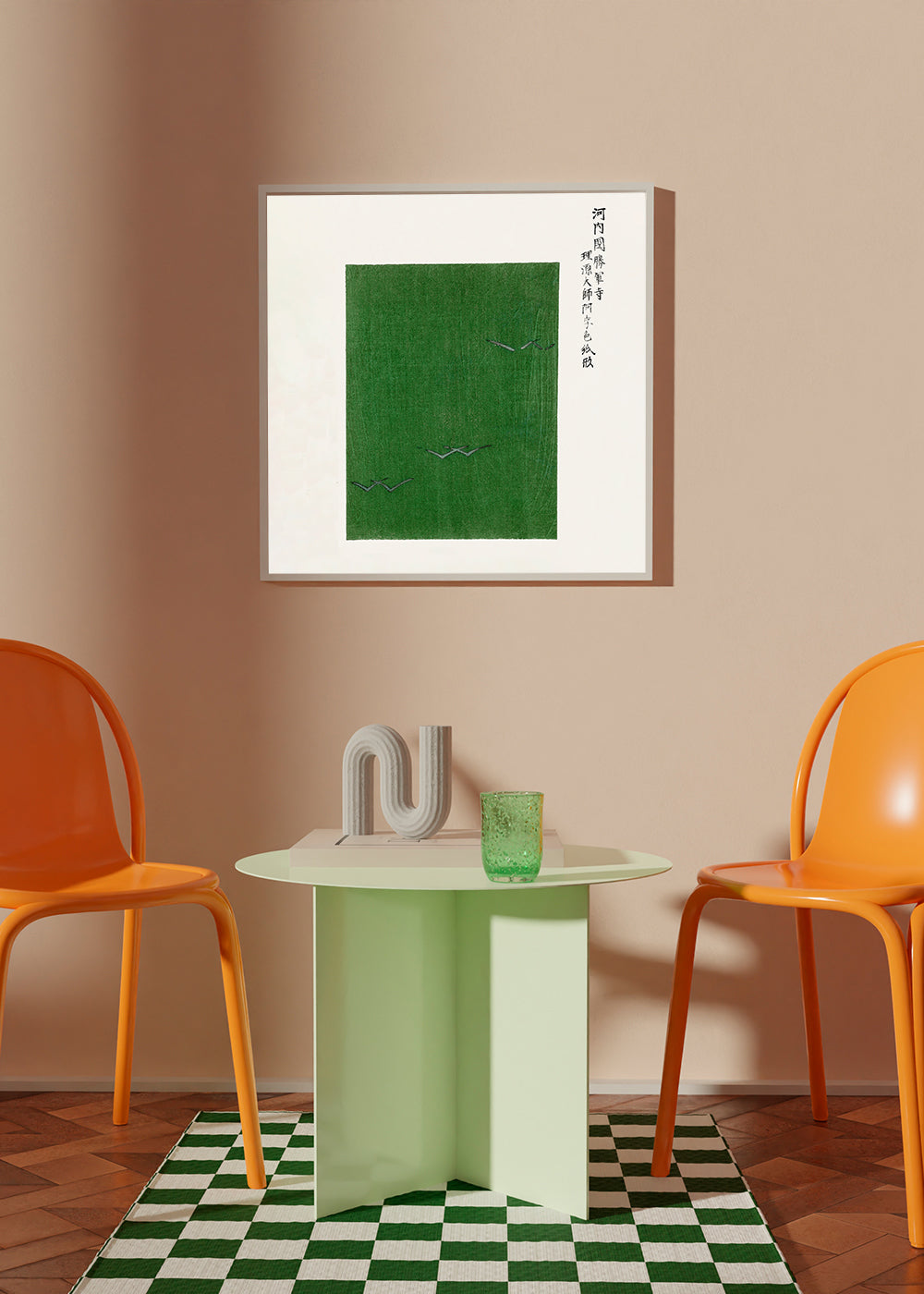 Scandinavian wall art Green Birds Woodblock print from Yatsuo no tsubaki by Taguchi Tomoki - Square