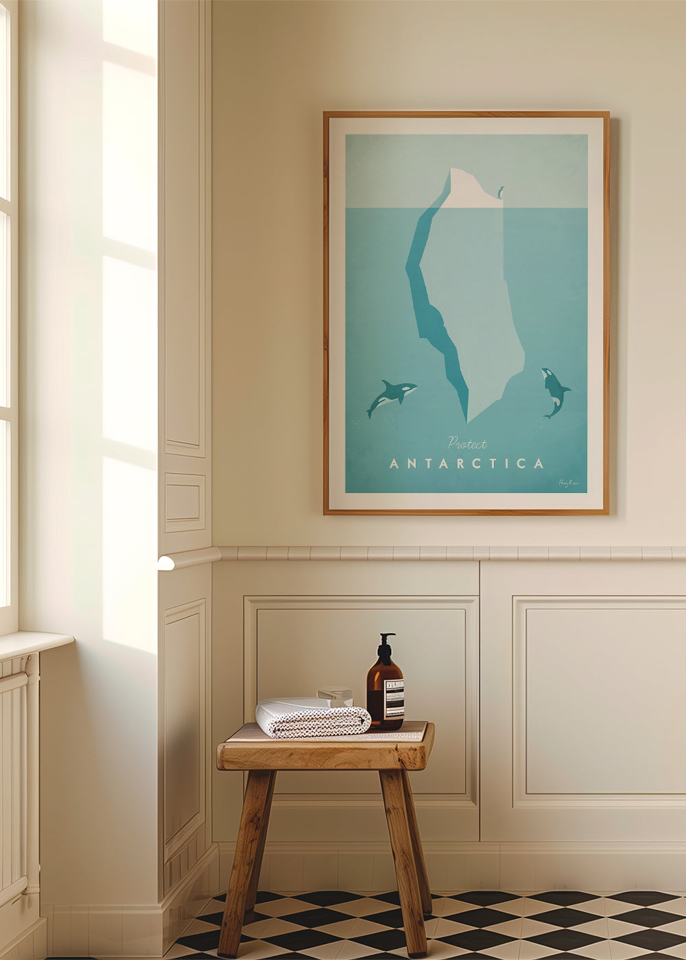 A poster inspired by the collection of travel posters, from the mind of Henry Rivers, with blue tones, and perfect to hang vertically. Travel without leaving the sofa with these and other map and city prints. Forget about boring walls.