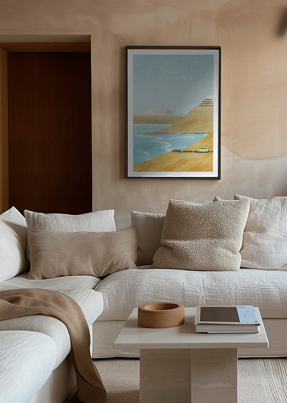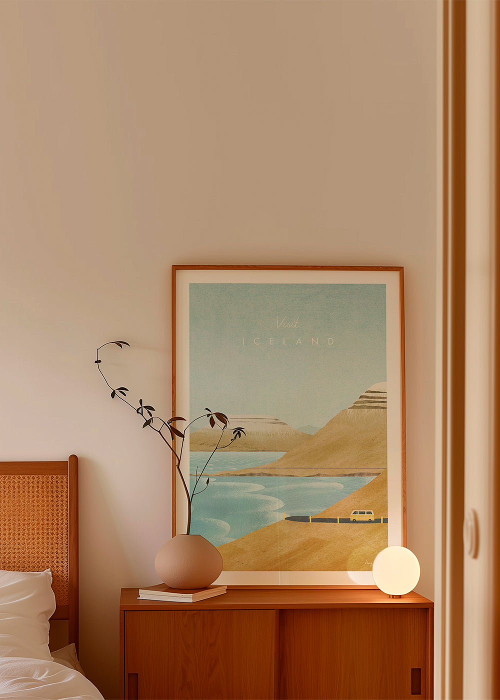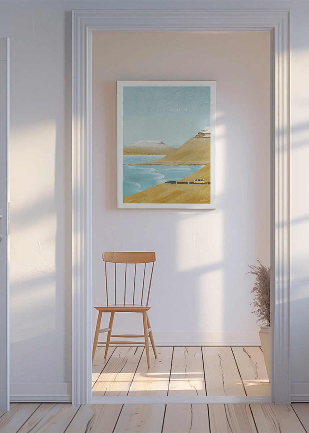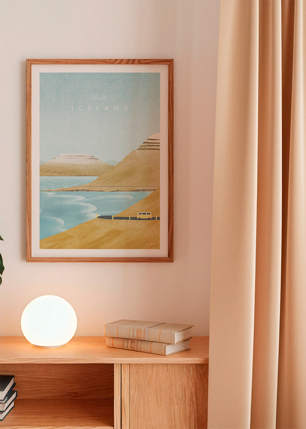 A print in the style of our travel posters, created by Henry Rivers, in tones of blue, and with vertical layout. Travel without leaving the sofa with these and other map and city prints. An empty wall is a sad wall; but with a few prints, we'll make it smile.